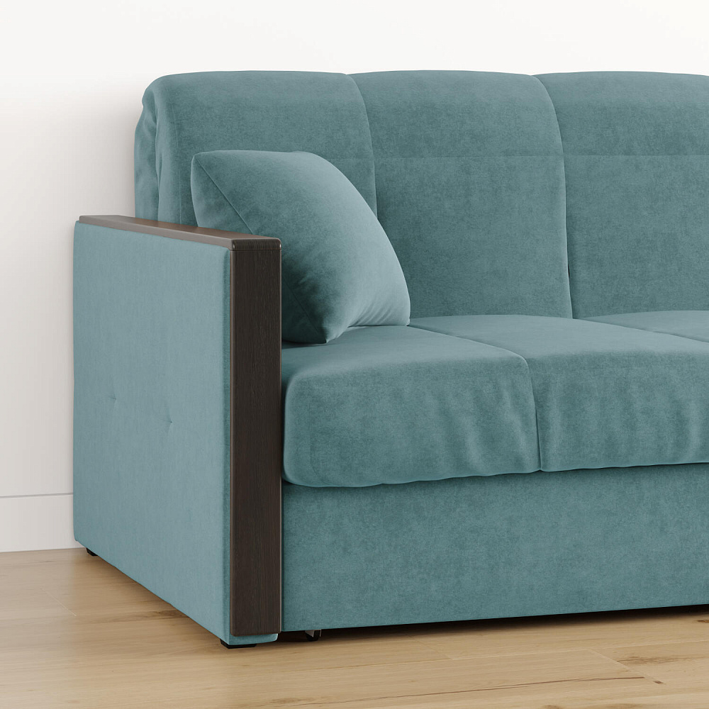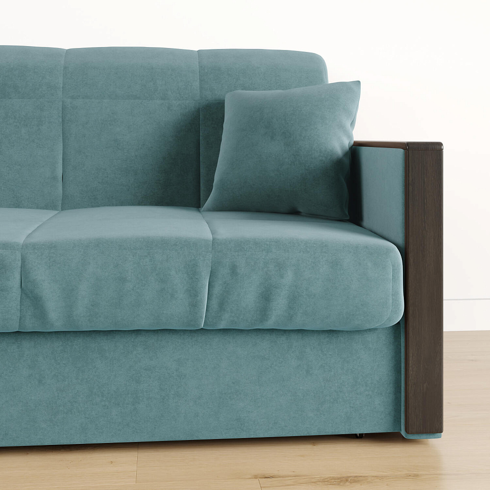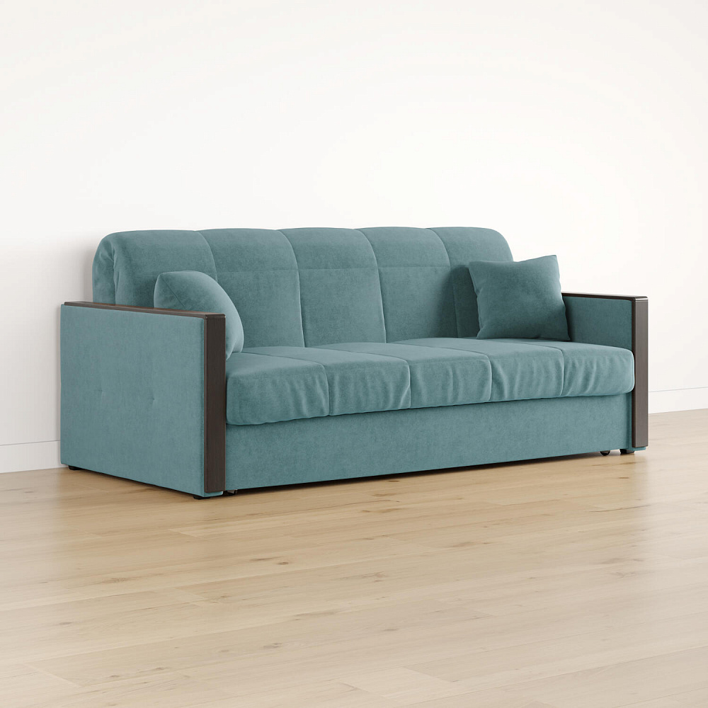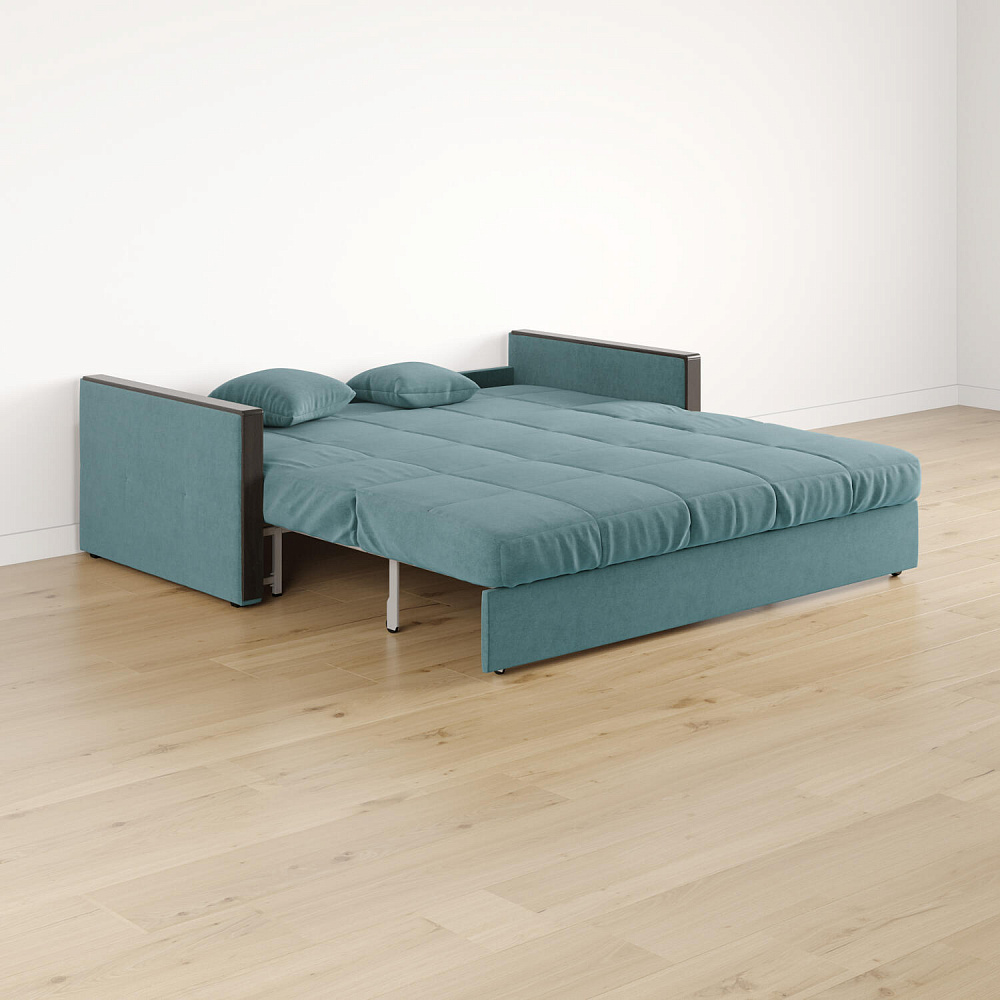 Механизм трансформации «Аккордеон». Чтобы разложить диван, необходимо приподнять сиденье и слегка потянуть на себя, далее диван разложится сам. Поверхность спального места ровная, без петель и швов, поэтому сон будет приятным и комфортным. Прорезиненные ролики защитят напольное покрытие от истирания.