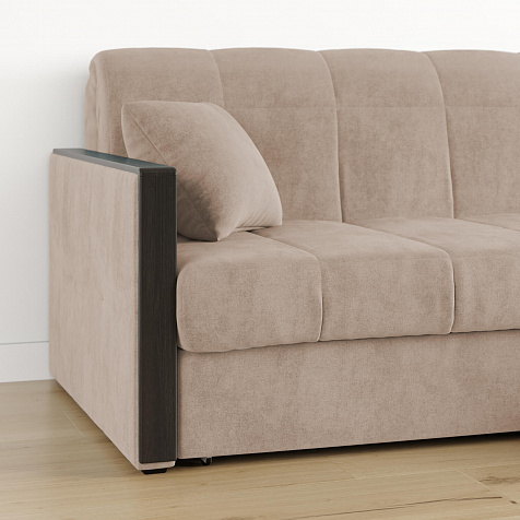 Механизм трансформации «Аккордеон». Чтобы разложить диван, необходимо приподнять сиденье и слегка потянуть на себя, далее диван разложится сам. Поверхность спального места ровная, без петель и швов, поэтому сон будет приятным и комфортным. Прорезиненные ролики защитят напольное покрытие от истирания.