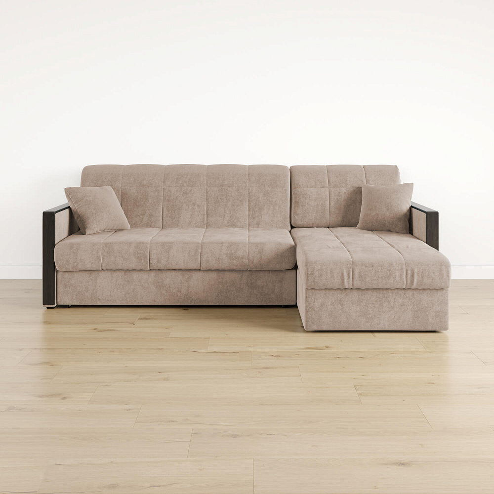 Размер спального места — 147 х 200 см. Диван легко трансформируется в двуспальную кровать, на которой смогут расположиться и с комфортом выспаться один-два человека. Универсальный угол. Диван подстроится под условия помещения — оттоманка устанавливается как слева, так и справа.