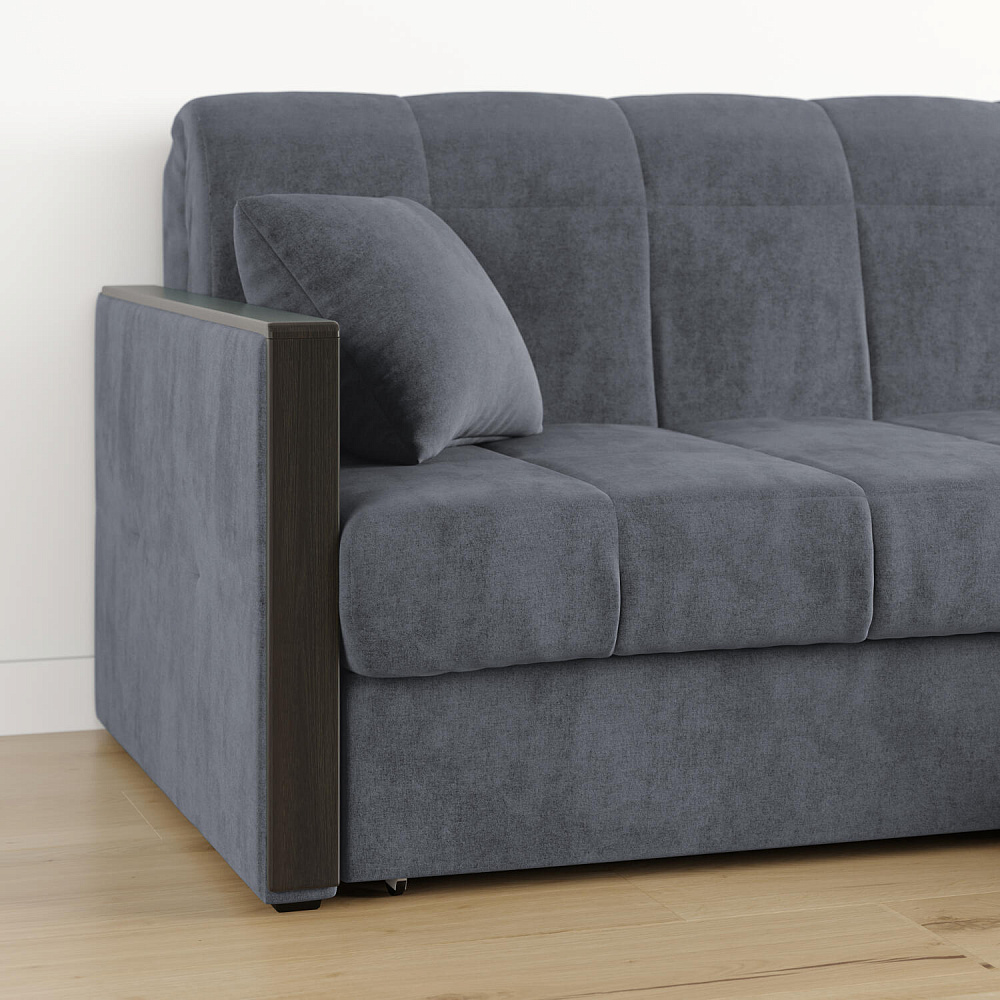 Механизм трансформации «Аккордеон». Чтобы разложить диван, необходимо приподнять сиденье и слегка потянуть на себя, далее диван разложится сам. Поверхность спального места ровная, без петель и швов, поэтому сон будет приятным и комфортным. Прорезиненные ролики защитят напольное покрытие от истирания.
