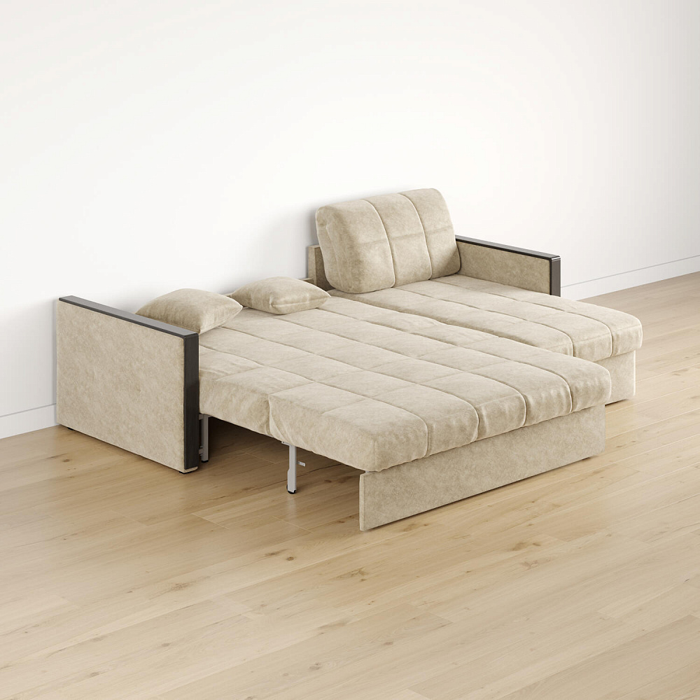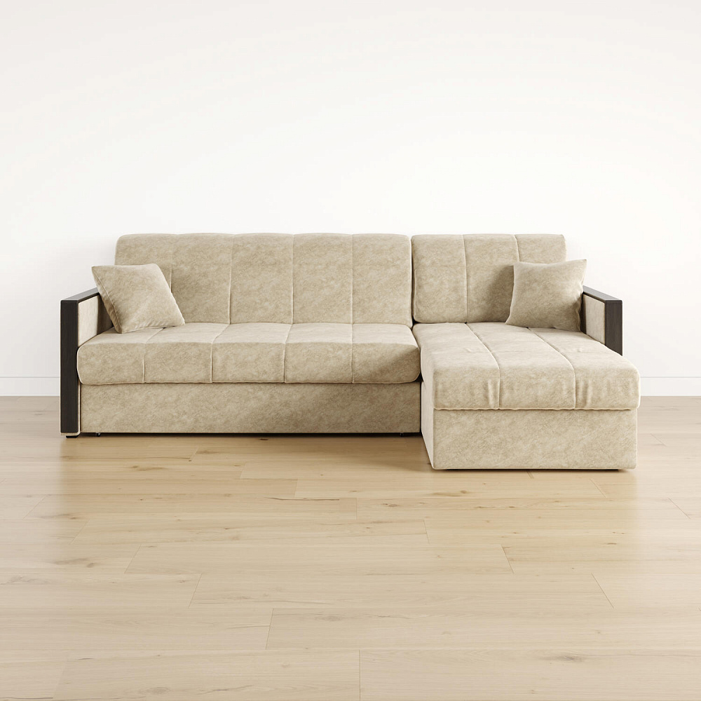 Угловой диван «Бристоль» с оттоманкой сделает отдых ещё удобнее. Модель оснащена накладками на подлокотниках, на которые удобно положить ТВ-пульт или смартфон. В оттоманке находится вместительный отсек для постельного белья и других вещей. Благодаря механизму трансформации «Аккордеон» диван легко превращается в полноценную кровать для одного-двух человек. Пропорциональные формы, плавные линии декоративного канта подчеркивают лаконичный дизайн, поэтому диван подойдет для любого современного интерьера.