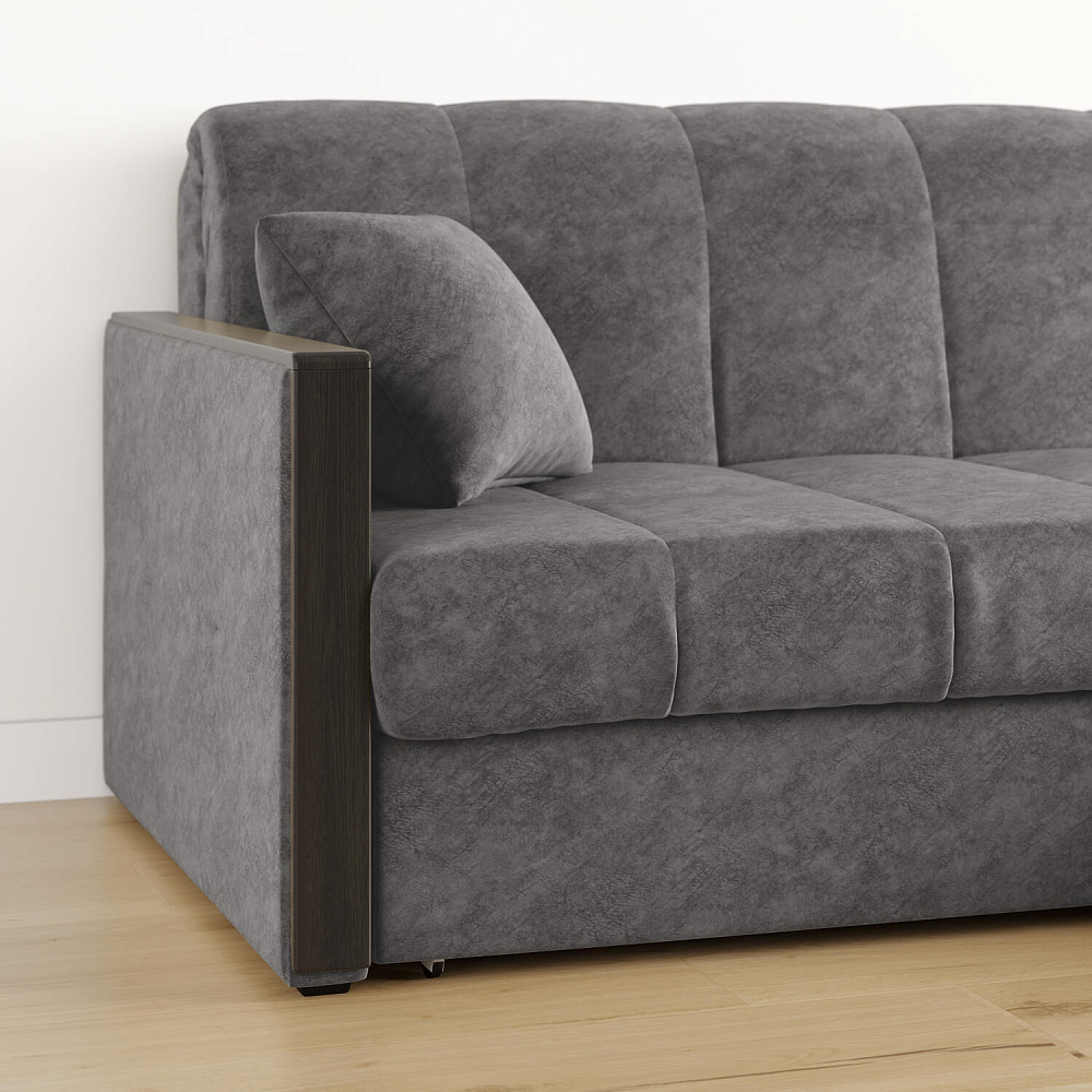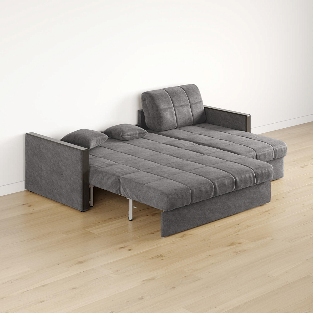 Размер спального места — 147 х 200 см. Диван легко трансформируется в двуспальную кровать, на которой смогут расположиться и с комфортом выспаться один-два человека. Универсальный угол. Диван подстроится под условия помещения — оттоманка устанавливается как слева, так и справа.