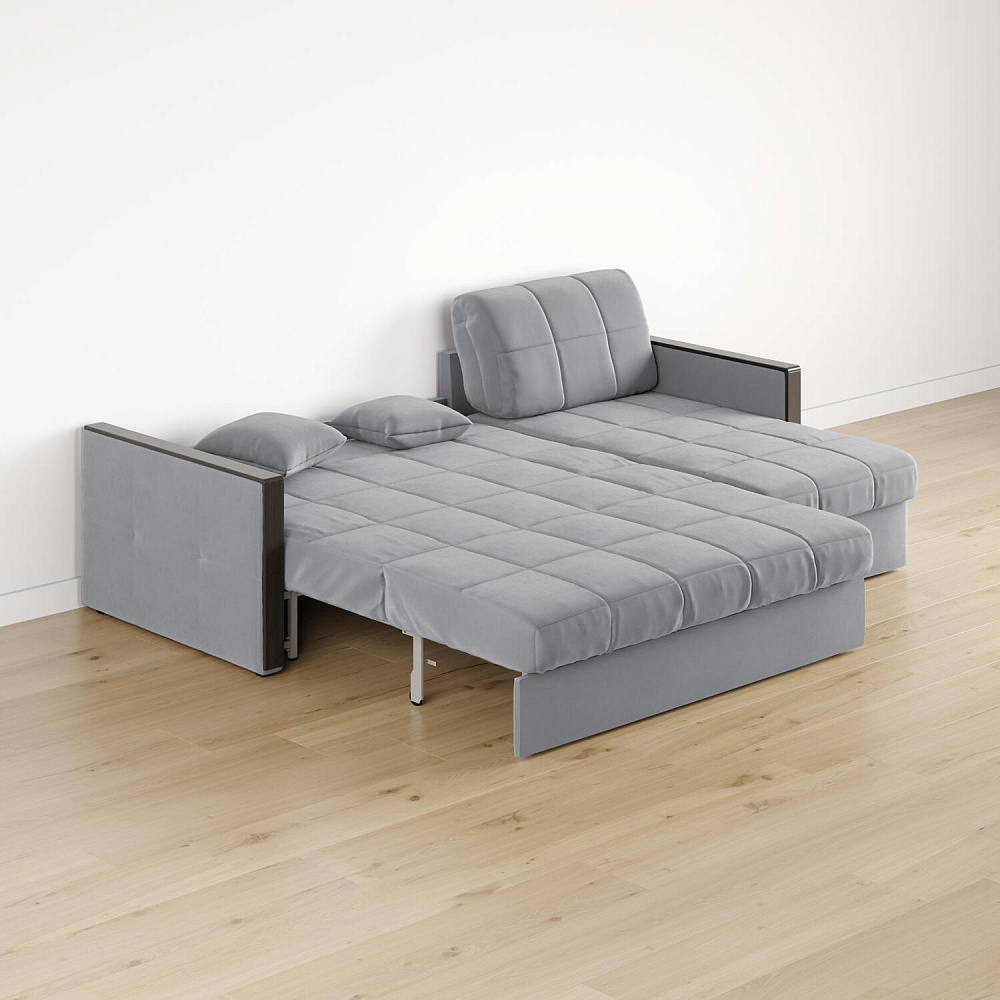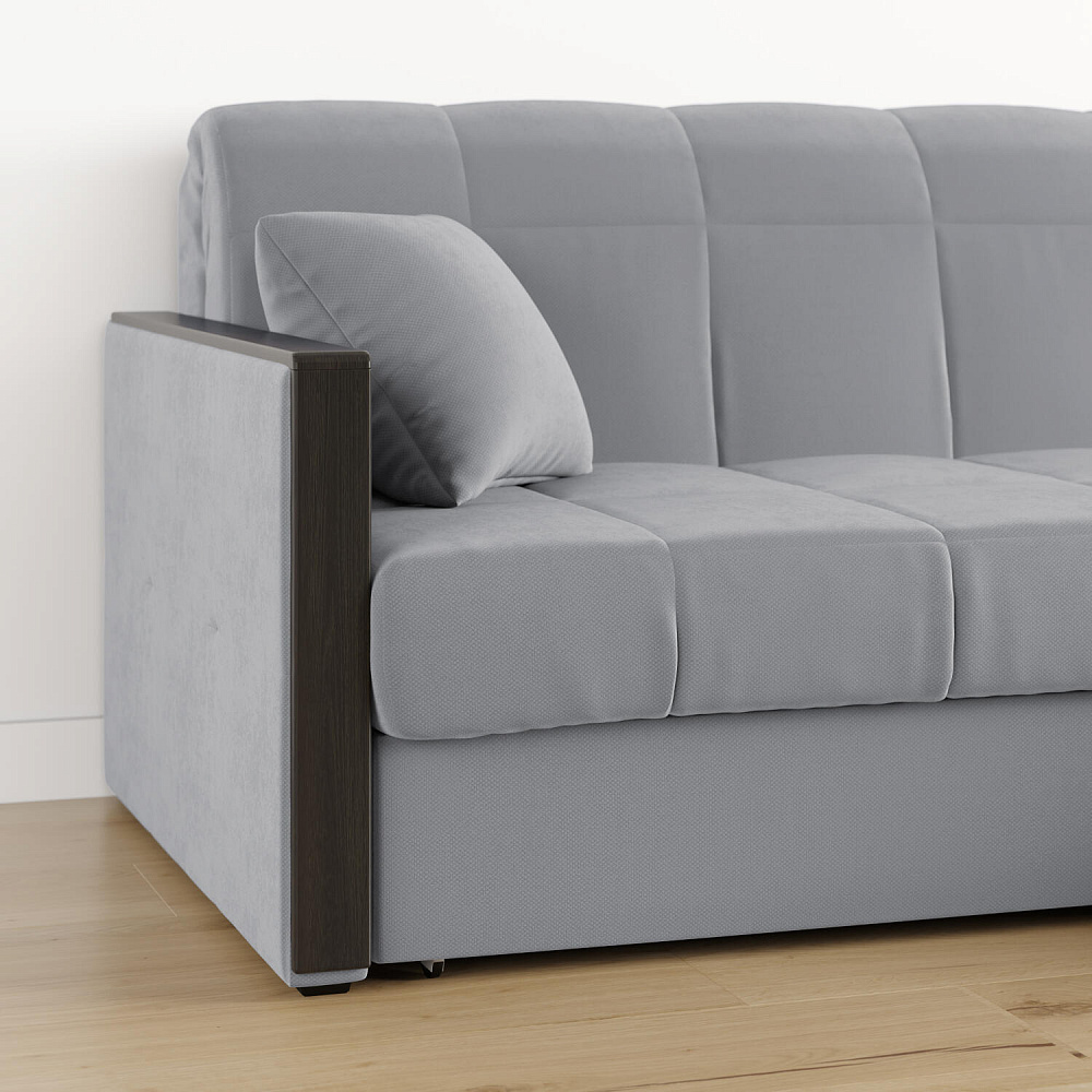 Механизм трансформации «Аккордеон». Чтобы разложить диван, необходимо приподнять сиденье и слегка потянуть на себя, далее диван разложится сам. Поверхность спального места ровная, без петель и швов, поэтому сон будет приятным и комфортным. Прорезиненные ролики защитят напольное покрытие от истирания.
