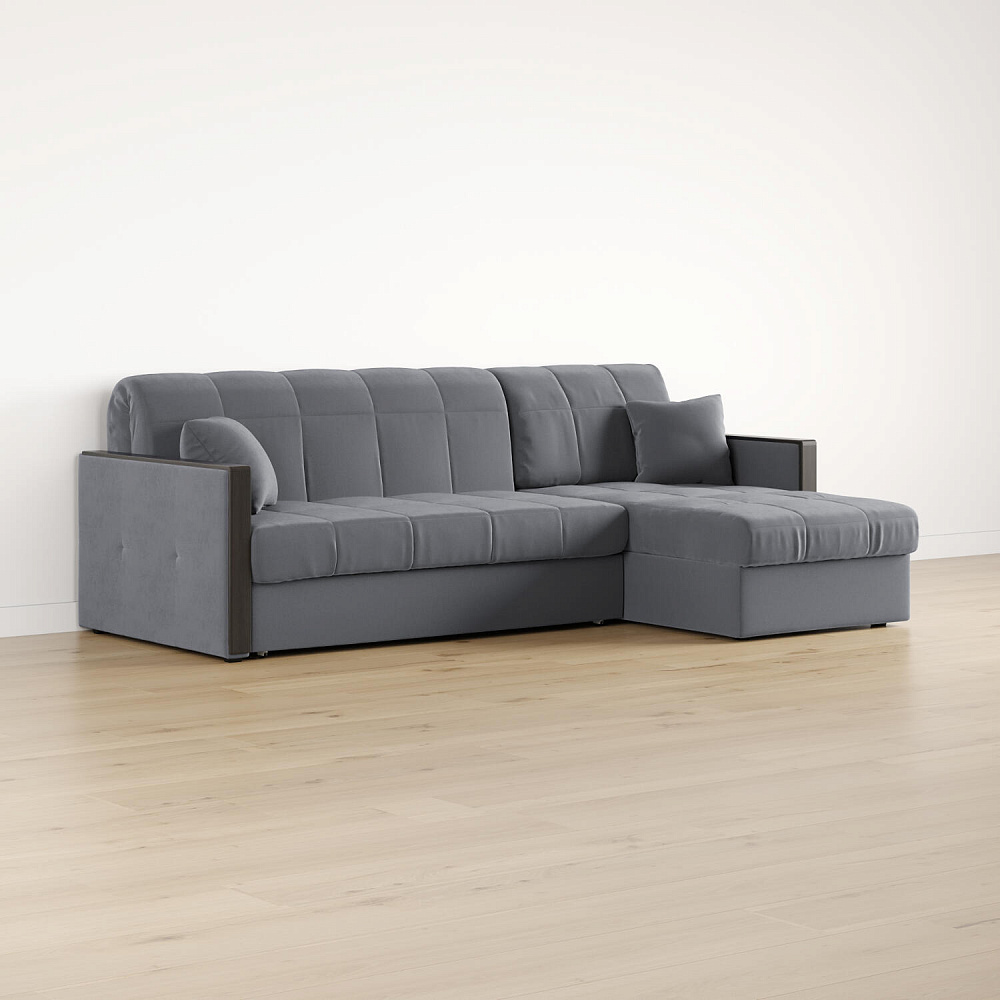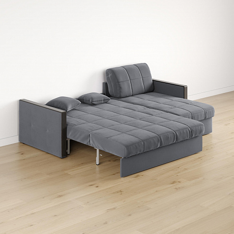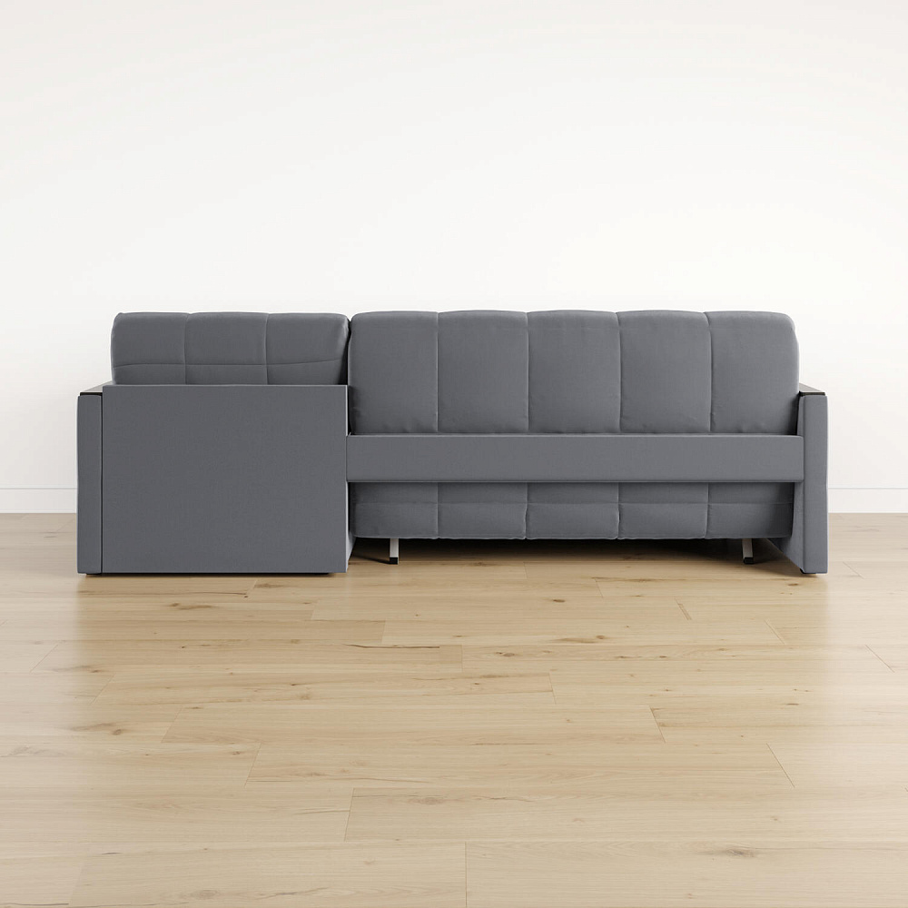 Размер спального места — 147 х 200 см. Диван легко трансформируется в двуспальную кровать, на которой смогут расположиться и с комфортом выспаться один-два человека. Универсальный угол. Диван подстроится под условия помещения — оттоманка устанавливается как слева, так и справа.