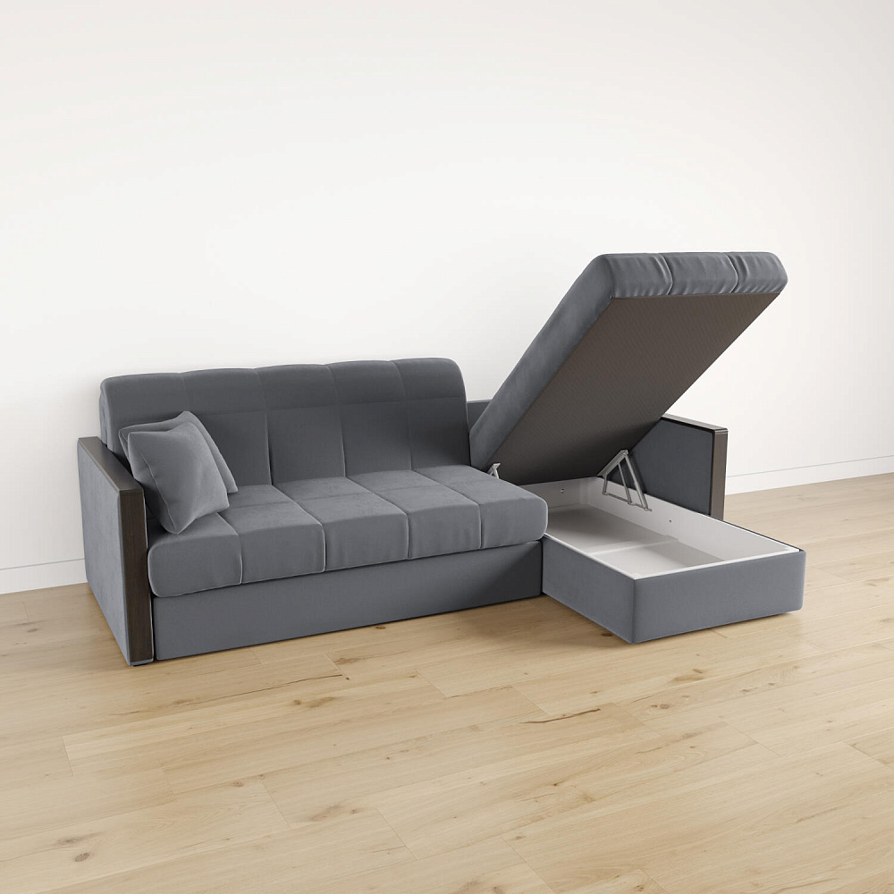 Угловой диван «Бристоль» с оттоманкой сделает отдых ещё удобнее. Модель оснащена накладками на подлокотниках, на которые удобно положить ТВ-пульт или смартфон. В оттоманке находится вместительный отсек для постельного белья и других вещей. Благодаря механизму трансформации «Аккордеон» диван легко превращается в полноценную кровать для одного-двух человек. Пропорциональные формы, плавные линии декоративного канта подчеркивают лаконичный дизайн, поэтому диван подойдет для любого современного интерьера.