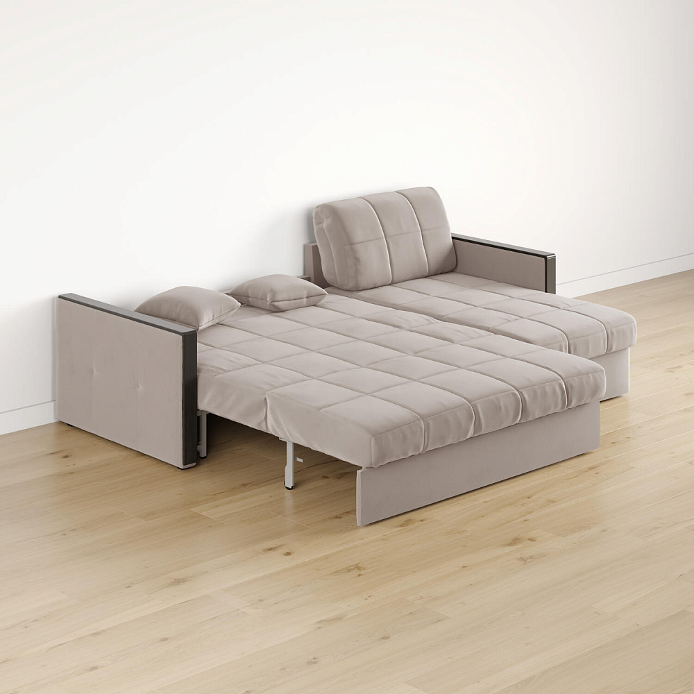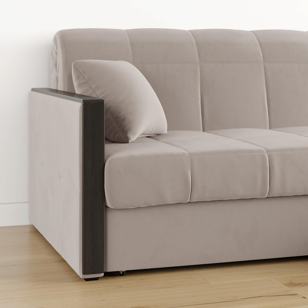 Механизм трансформации «Аккордеон». Чтобы разложить диван, необходимо приподнять сиденье и слегка потянуть на себя, далее диван разложится сам. Поверхность спального места ровная, без петель и швов, поэтому сон будет приятным и комфортным. Прорезиненные ролики защитят напольное покрытие от истирания.