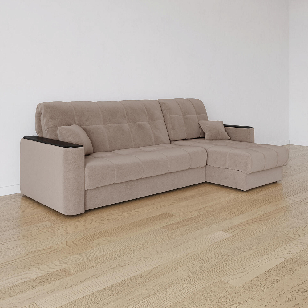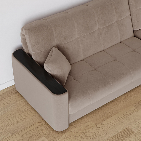 Диван угловой «Камелот» — лучшее сочетание удобства, компактности и функциональности. Модель в лаконичном дизайне поможет оформить уютную и удобную зону для сна и отдыха в небольших гостиных в классическом стиле. Изюминкой модели являются деревянные накладки на подлокотниках, на которых можно разместить пульт от телевизора или чашку чая. Диван создаст в комнате комфортную обстановку и придаст ей неповторимый вид.