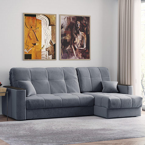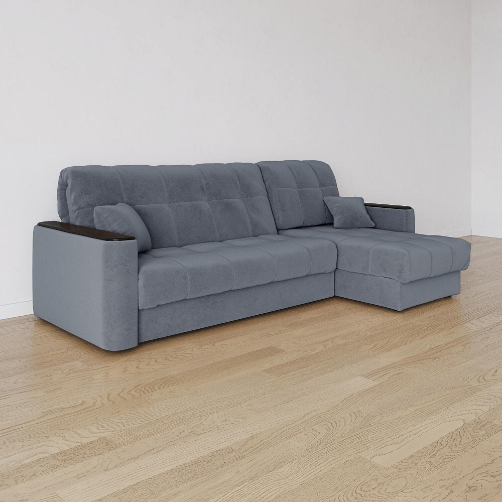 - Универсальный угол. Диван подстроится под условия помещения — оттоманка устанавливается как слева, так и справа.