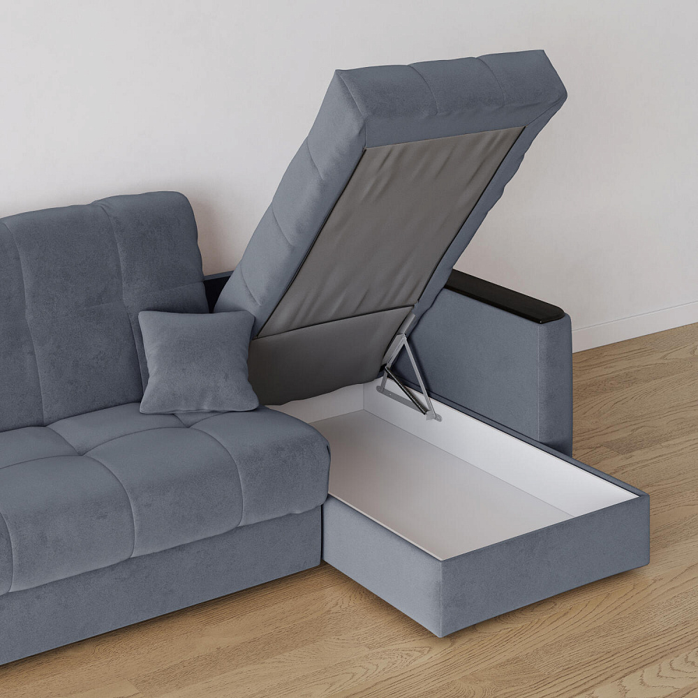 - Короб для белья. В оттоманке дивана скрыт просторный бельевой ящик, в котором можно разместить все необходимые постельные принадлежности.