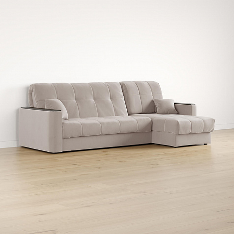 - Универсальный угол. Диван подстроится под условия помещения — оттоманка устанавливается как слева, так и справа.