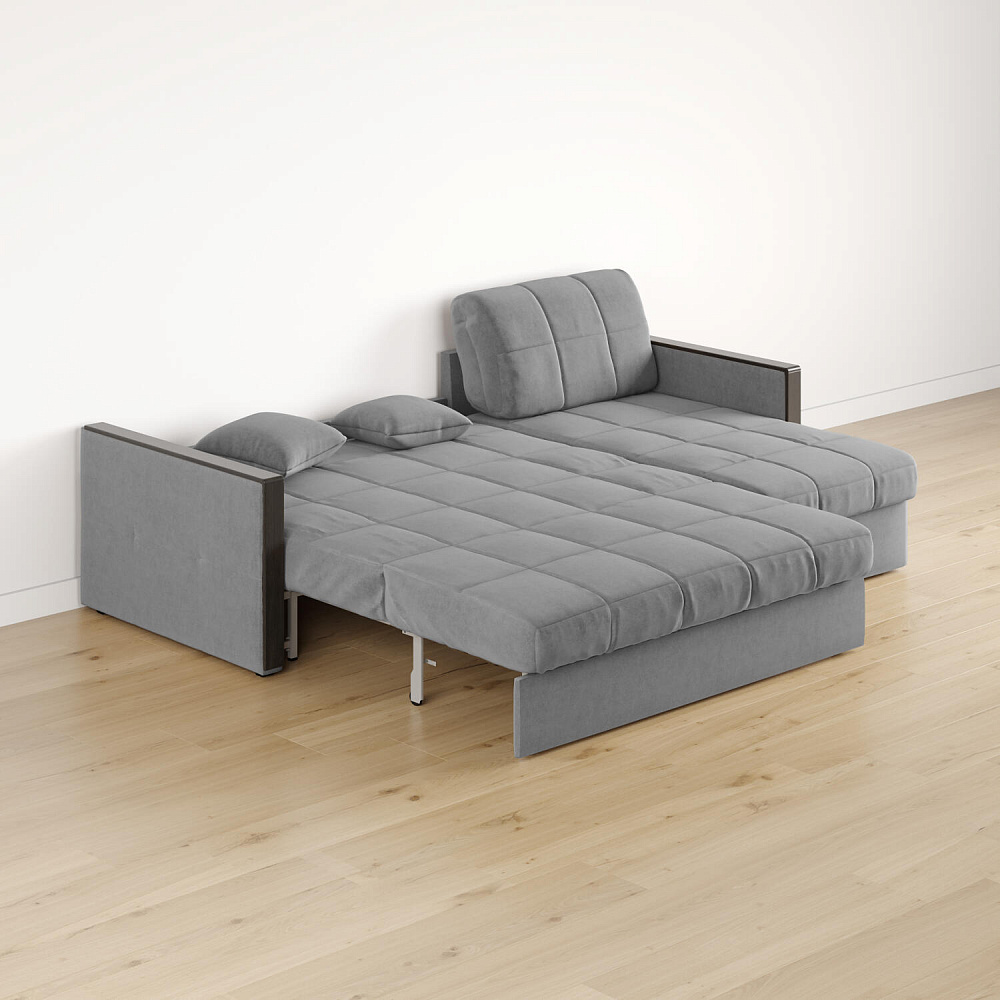 Размер спального места — 147 х 200 см. Диван легко трансформируется в двуспальную кровать, на которой смогут расположиться и с комфортом выспаться один-два человека. Универсальный угол. Диван подстроится под условия помещения — оттоманка устанавливается как слева, так и справа.