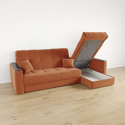 - Механизм трансформации «Аккордеон». Надёжный и простой в использовании механизм. Приподнимите сиденье и слегка потяните на себя, диван сам разложится.