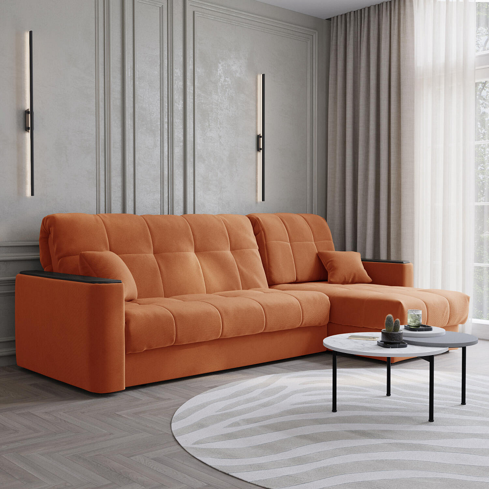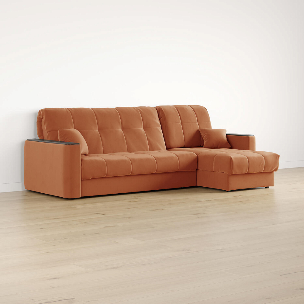 Диван угловой «Камелот» — лучшее сочетание удобства, компактности и функциональности. Модель в лаконичном дизайне поможет оформить уютную и удобную зону для сна и отдыха в небольших гостиных в классическом стиле. Изюминкой модели являются деревянные накладки на подлокотниках, на которых можно разместить пульт от телевизора или чашку чая. Диван создаст в комнате комфортную обстановку и придаст ей неповторимый вид.