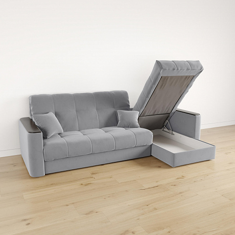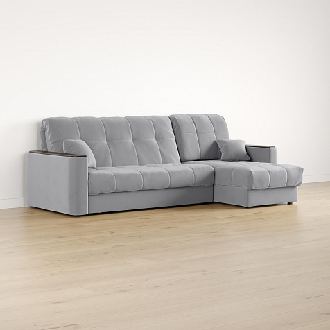 - Универсальный угол. Диван подстроится под условия помещения — оттоманка устанавливается как слева, так и справа.