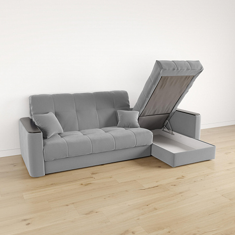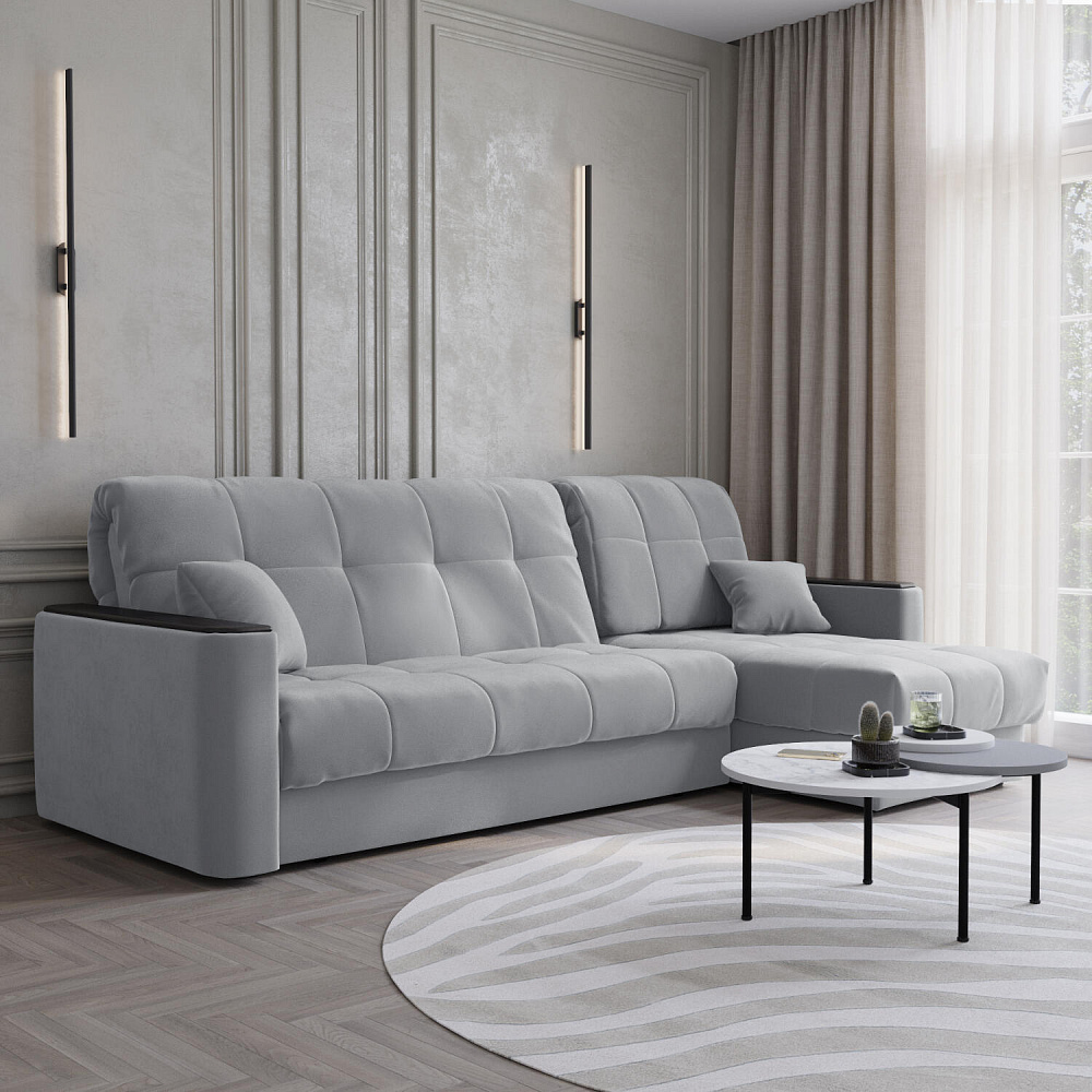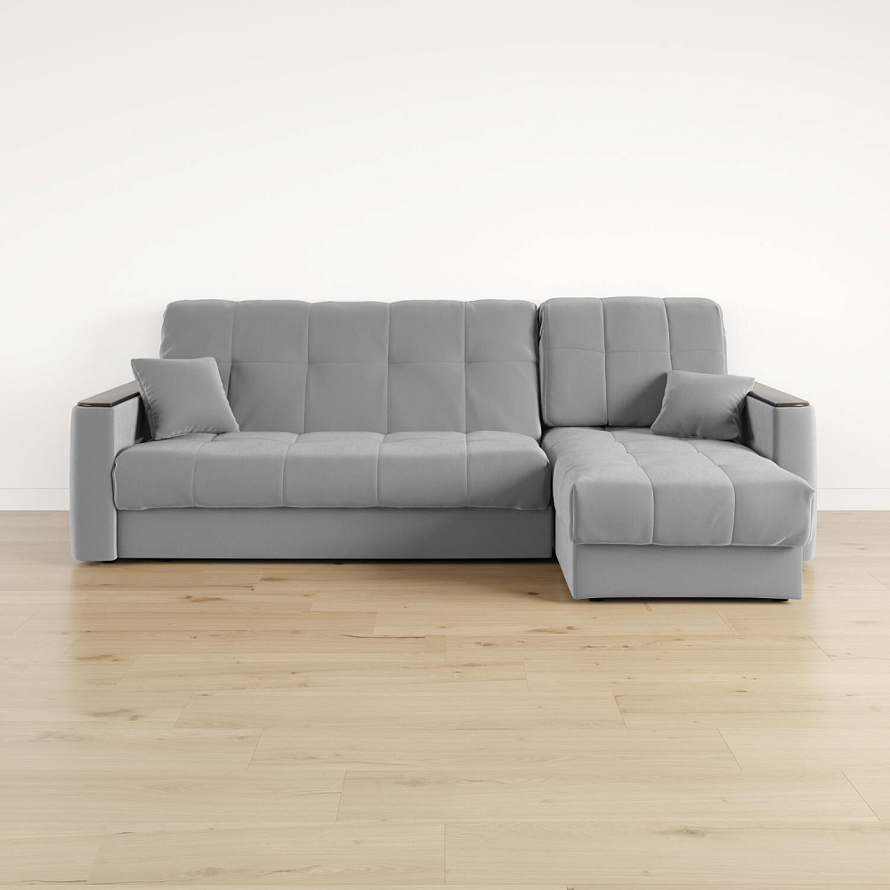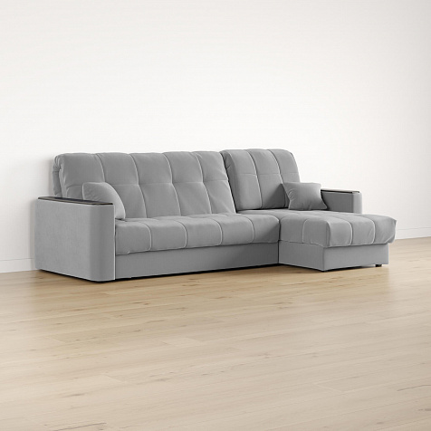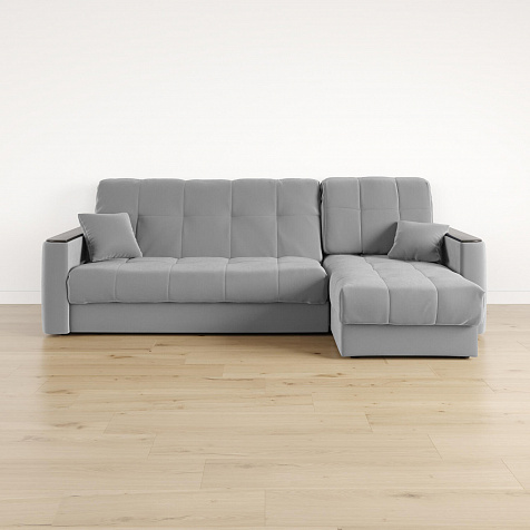 - Универсальный угол. Диван подстроится под условия помещения — оттоманка устанавливается как слева, так и справа.
