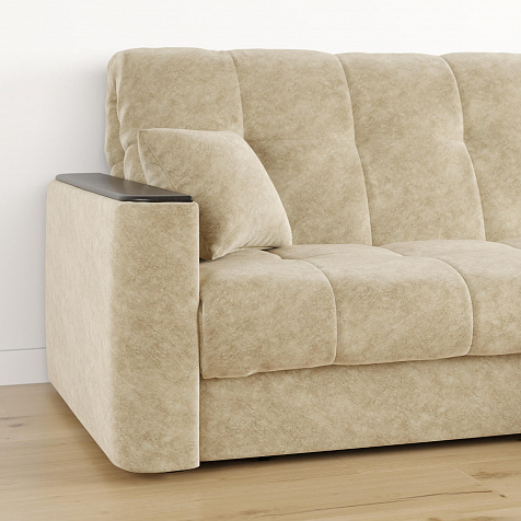 - Обивка из велюра с покрытием Easy Clean. Мягкая ткань природных оттенков легко чистится благодаря грязеотталкивающей пропитке.