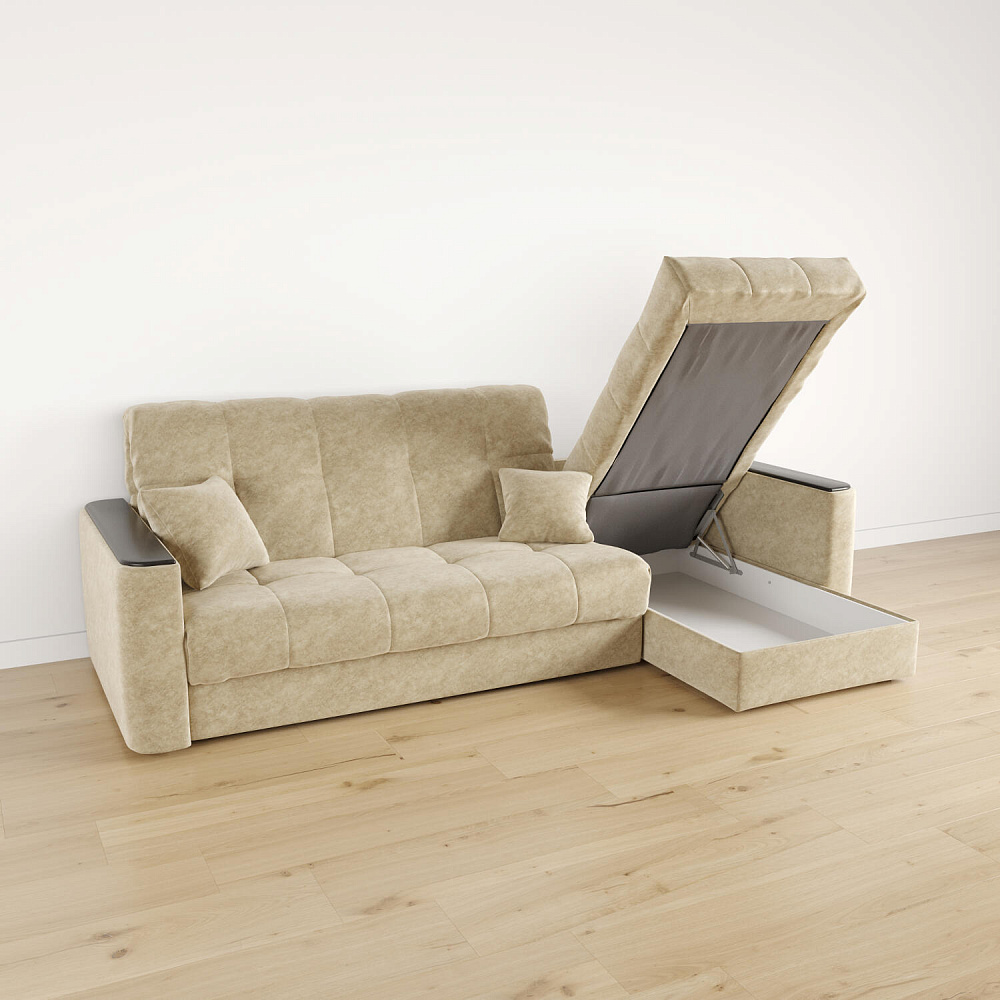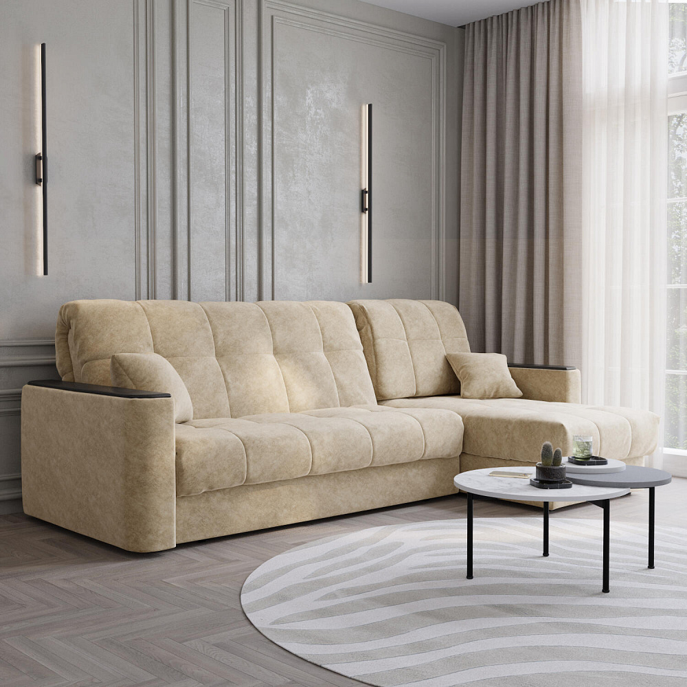 Диван угловой «Камелот» — лучшее сочетание удобства, компактности и функциональности. Модель в лаконичном дизайне поможет оформить уютную и удобную зону для сна и отдыха в небольших гостиных в классическом стиле. Изюминкой модели являются деревянные накладки на подлокотниках, на которых можно разместить пульт от телевизора или чашку чая. Диван создаст в комнате комфортную обстановку и придаст ей неповторимый вид.