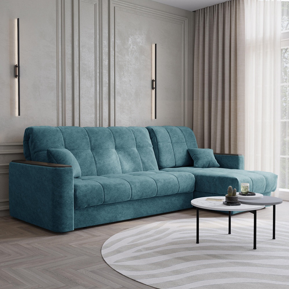 - Универсальный угол. Диван подстроится под условия помещения — оттоманка устанавливается как слева, так и справа.