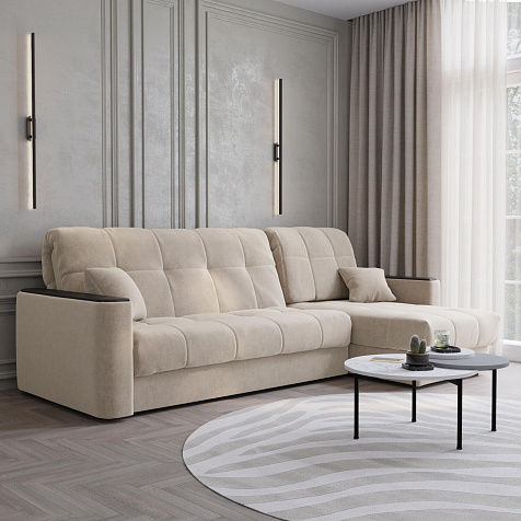 Диван угловой «Камелот» — лучшее сочетание удобства, компактности и функциональности. Модель в лаконичном дизайне поможет оформить уютную и удобную зону для сна и отдыха в небольших гостиных в классическом стиле. Изюминкой модели являются деревянные накладки на подлокотниках, на которых можно разместить пульт от телевизора или чашку чая. Диван создаст в комнате комфортную обстановку и придаст ей неповторимый вид.