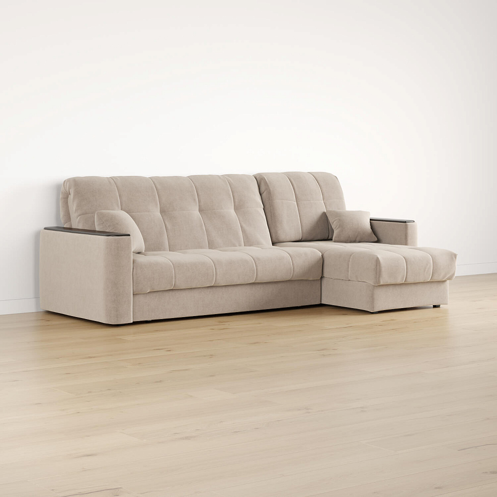 - Универсальный угол. Диван подстроится под условия помещения — оттоманка устанавливается как слева, так и справа.