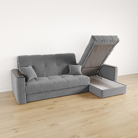 - Короб для белья. В оттоманке дивана скрыт просторный бельевой ящик, в котором можно разместить все необходимые постельные принадлежности.