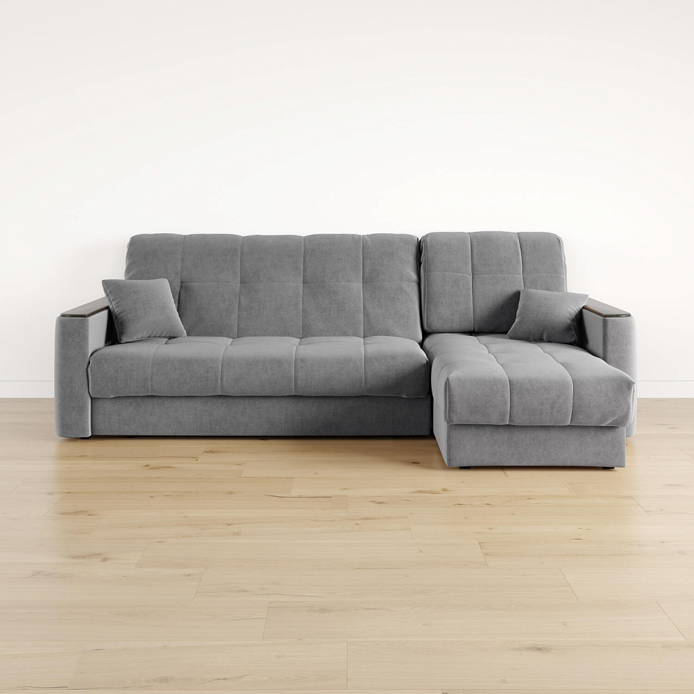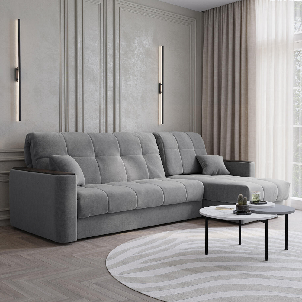 - Универсальный угол. Диван подстроится под условия помещения — оттоманка устанавливается как слева, так и справа.