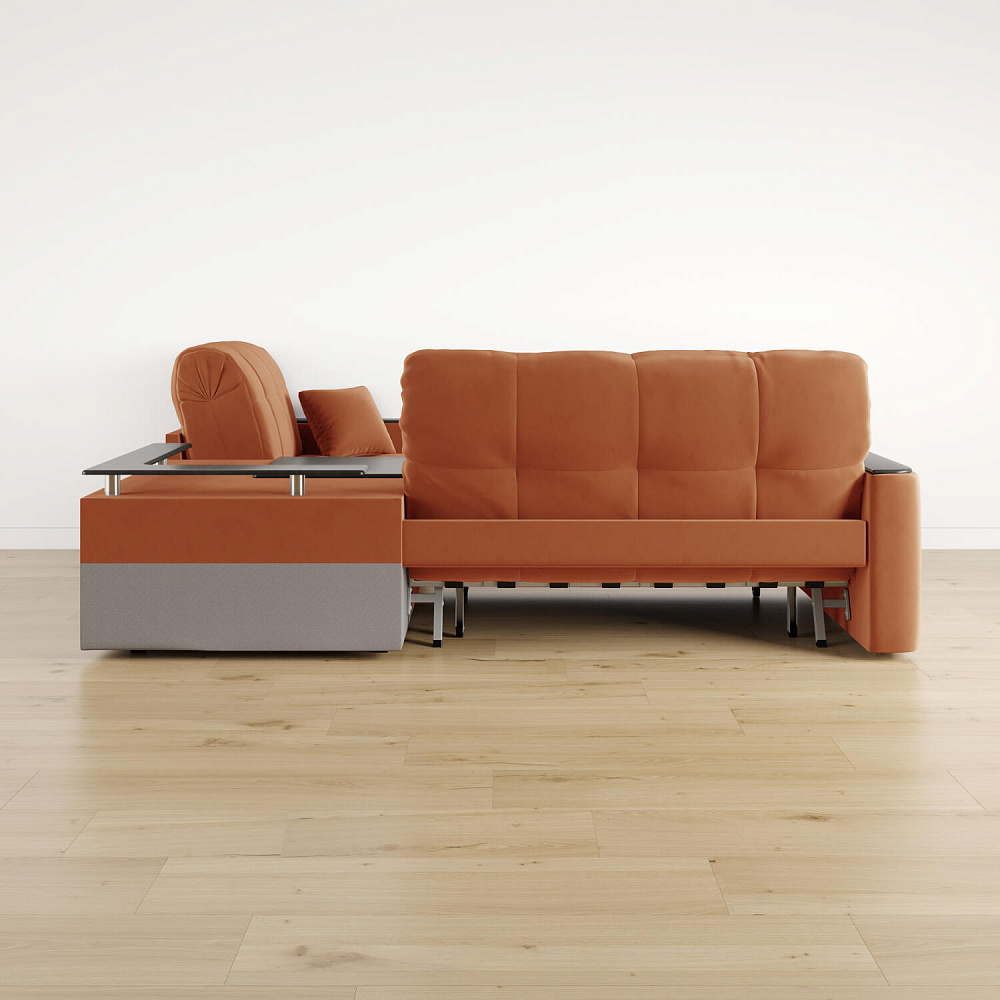 - Универсальный угол. Диван подстроится под условия помещения — бар устанавливается как слева, так и справа.