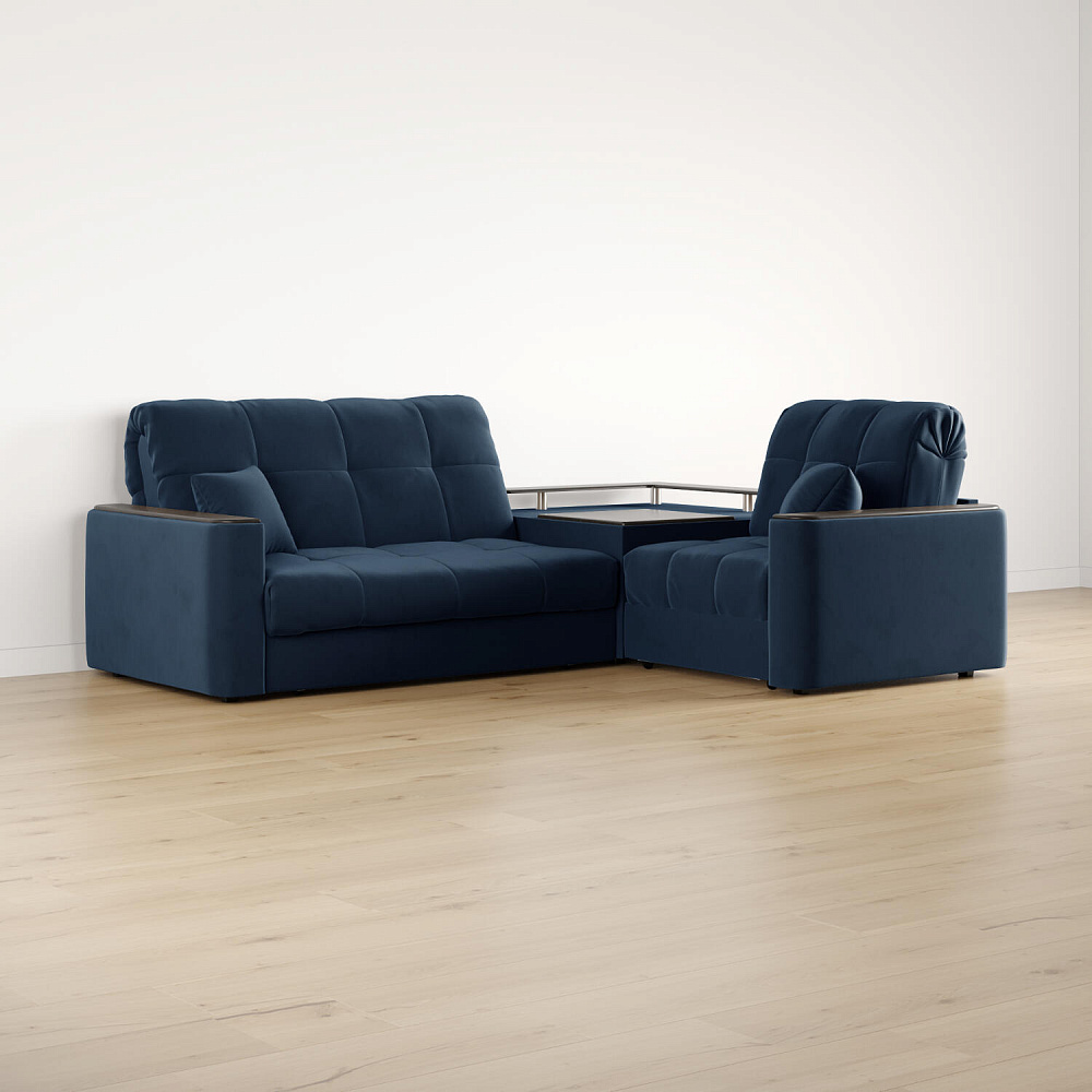 Диван угловой «Камелот» с баром станет главным местом для отдыха и приема гостей. Модель оснащена баром, на котором можно расположить еду и напитки во время просмотра фильмов и сериалов. Пропорциональные формы, плавные линии на сиденье и спинке подчеркивают лаконичный дизайн, поэтому диван подойдёт для любого современного интерьера. Диван создаст в комнате комфортную обстановку и придаст ей неповторимый вид.