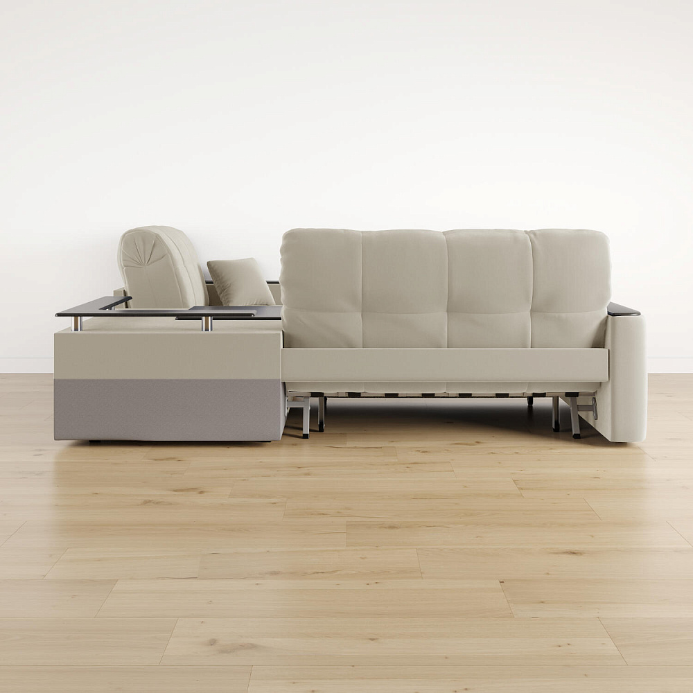 - Универсальный угол. Диван подстроится под условия помещения — бар устанавливается как слева, так и справа.