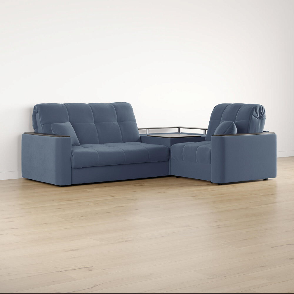 Диван угловой «Камелот» с баром станет главным местом для отдыха и приема гостей. Модель оснащена баром, на котором можно расположить еду и напитки во время просмотра фильмов и сериалов. Пропорциональные формы, плавные линии на сиденье и спинке подчеркивают лаконичный дизайн, поэтому диван подойдёт для любого современного интерьера. Диван создаст в комнате комфортную обстановку и придаст ей неповторимый вид.