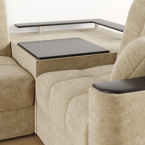 - Подлокотники-подставки. Благодаря накладкам подлокотники превращаются в мини-столики под смартфон, книгу или пульт.