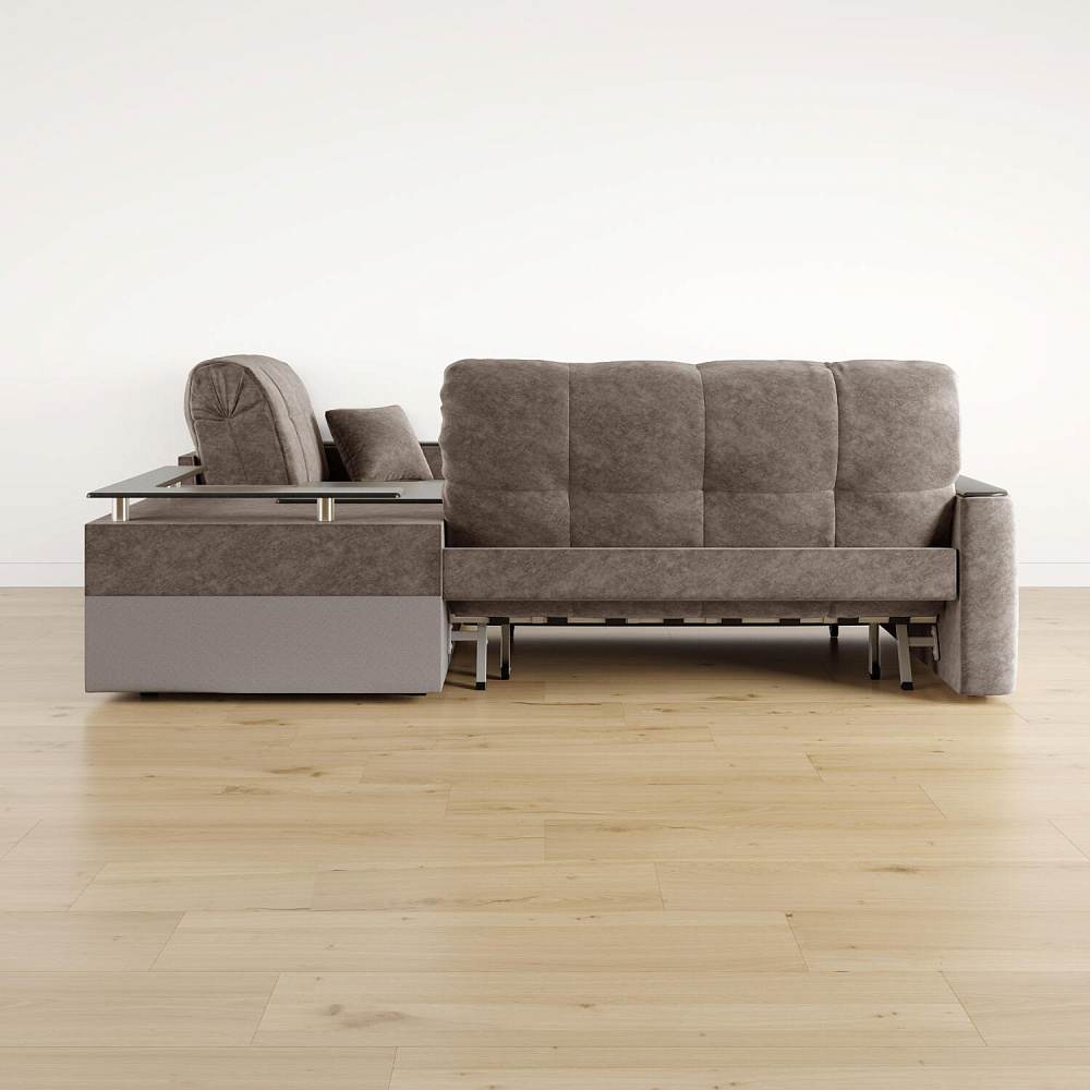 - Универсальный угол. Диван подстроится под условия помещения — бар устанавливается как слева, так и справа.