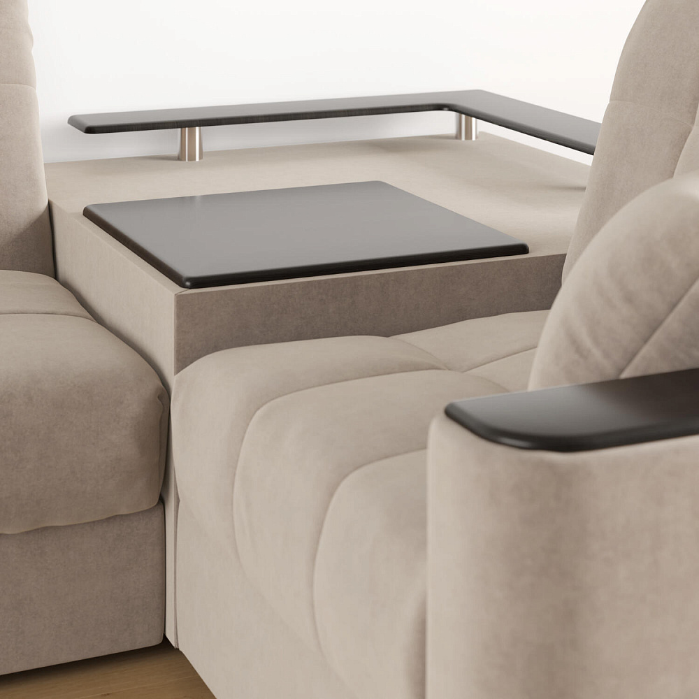 - Подлокотники-подставки. Благодаря накладкам подлокотники превращаются в мини-столики под смартфон, книгу или пульт.