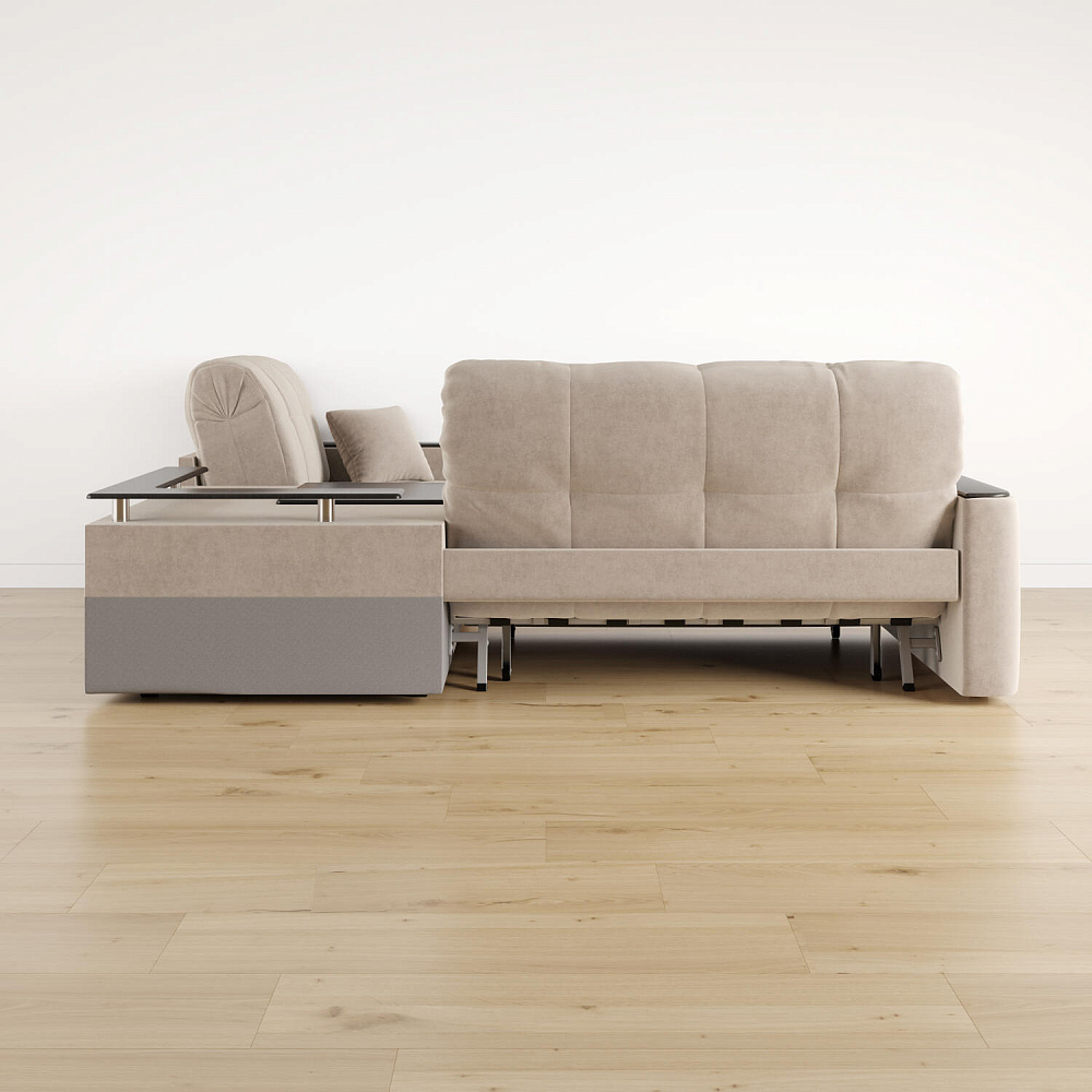 - Универсальный угол. Диван подстроится под условия помещения — бар устанавливается как слева, так и справа.