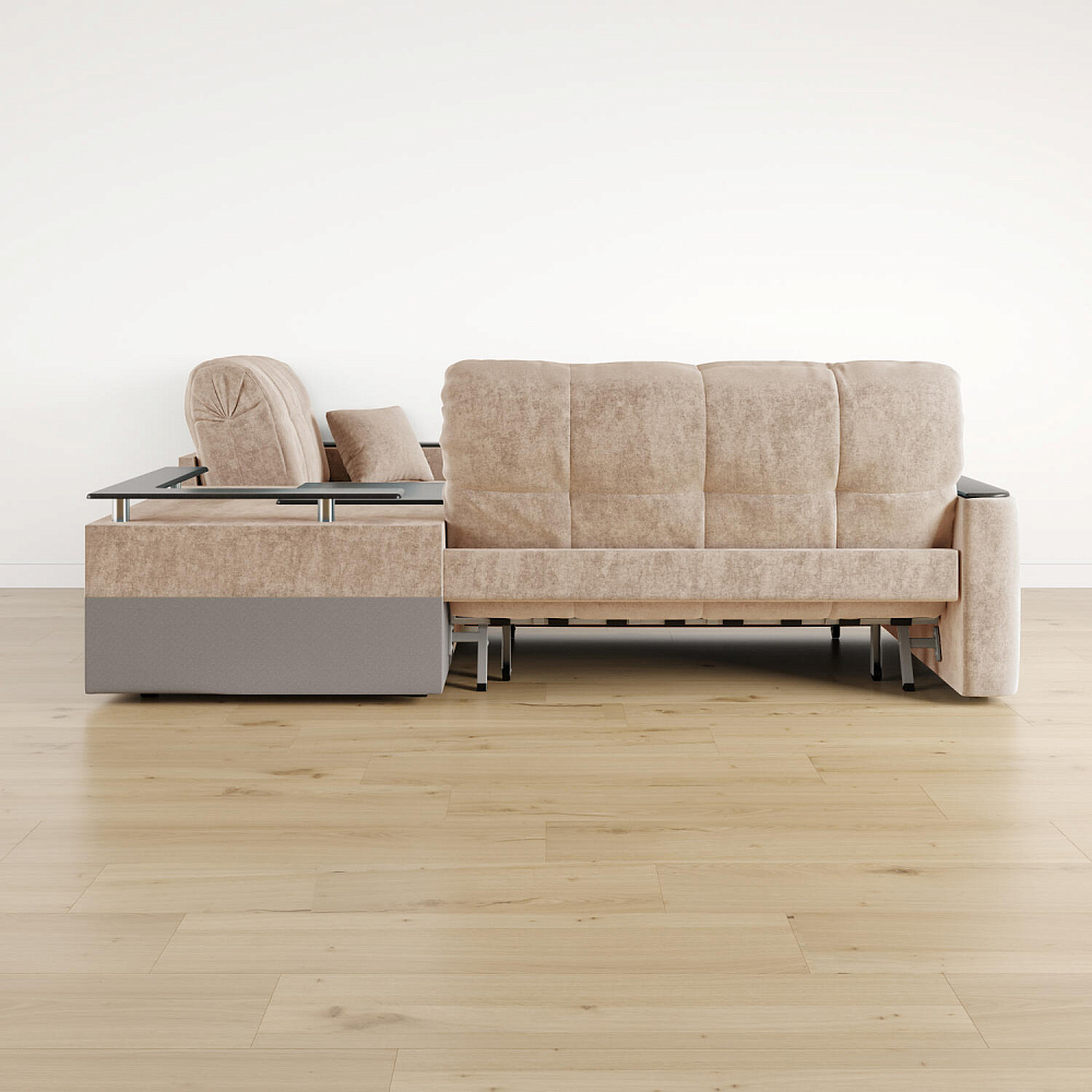 - Универсальный угол. Диван подстроится под условия помещения — бар устанавливается как слева, так и справа.