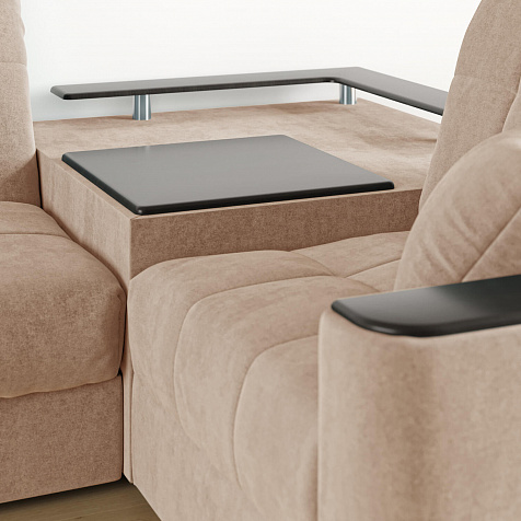 - Подлокотники-подставки. Благодаря накладкам подлокотники превращаются в мини-столики под смартфон, книгу или пульт.