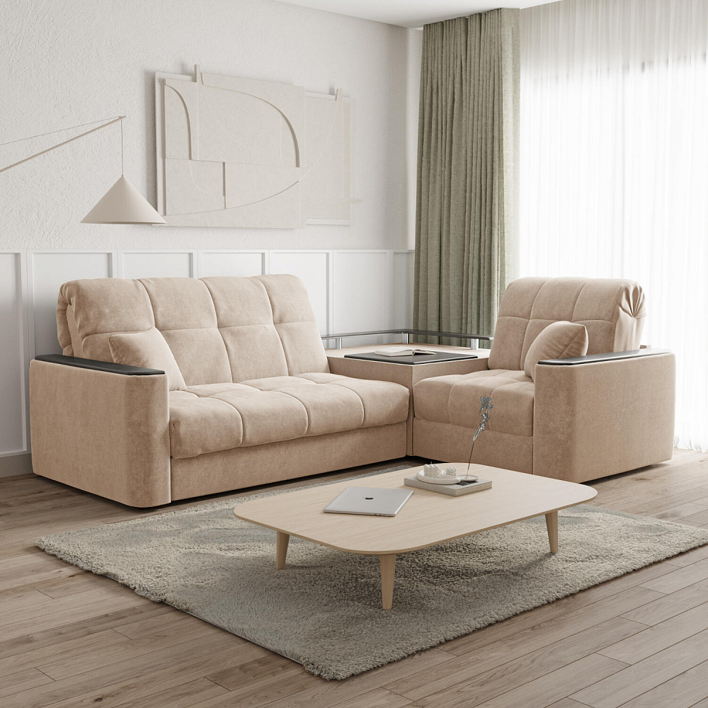 Обивка: велюр Happy (плотность ткани — 293,4 г/м2), устойчивость к истиранию — 40 000 циклов по тесту Мартиндейла.