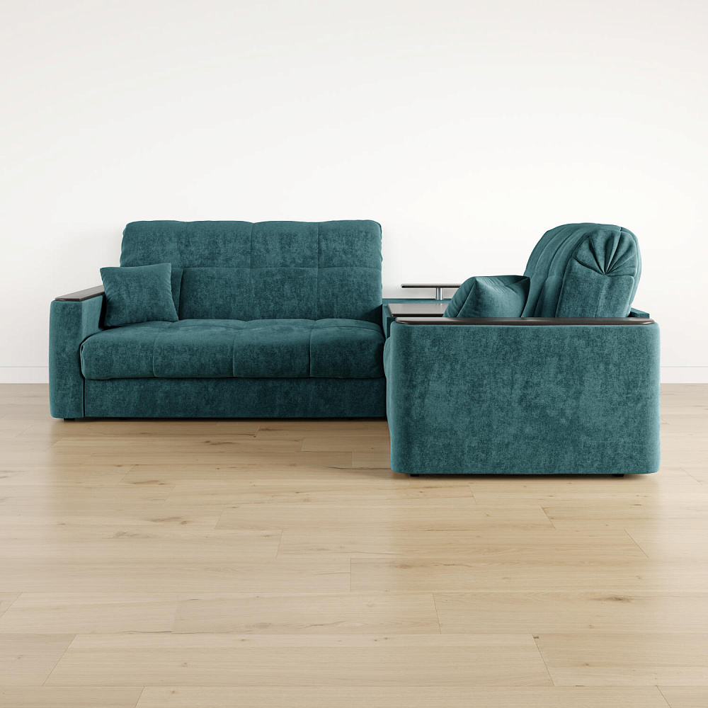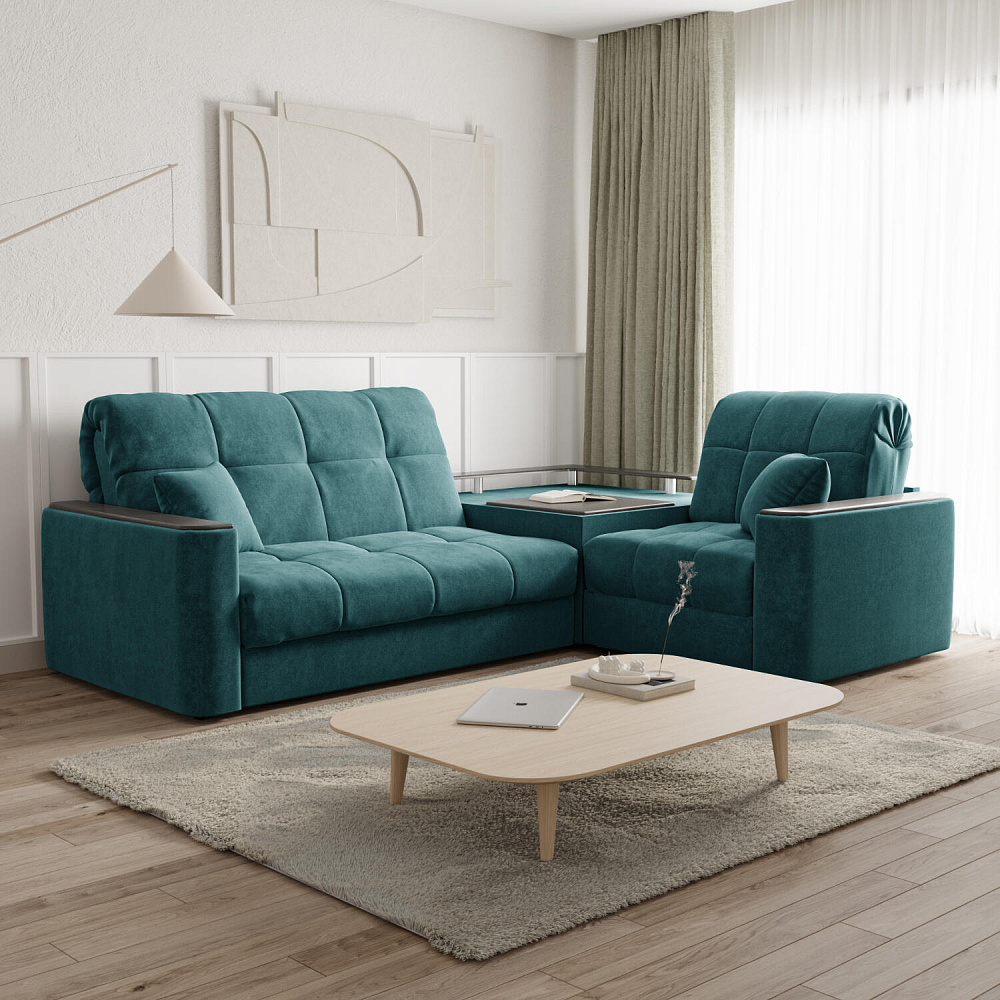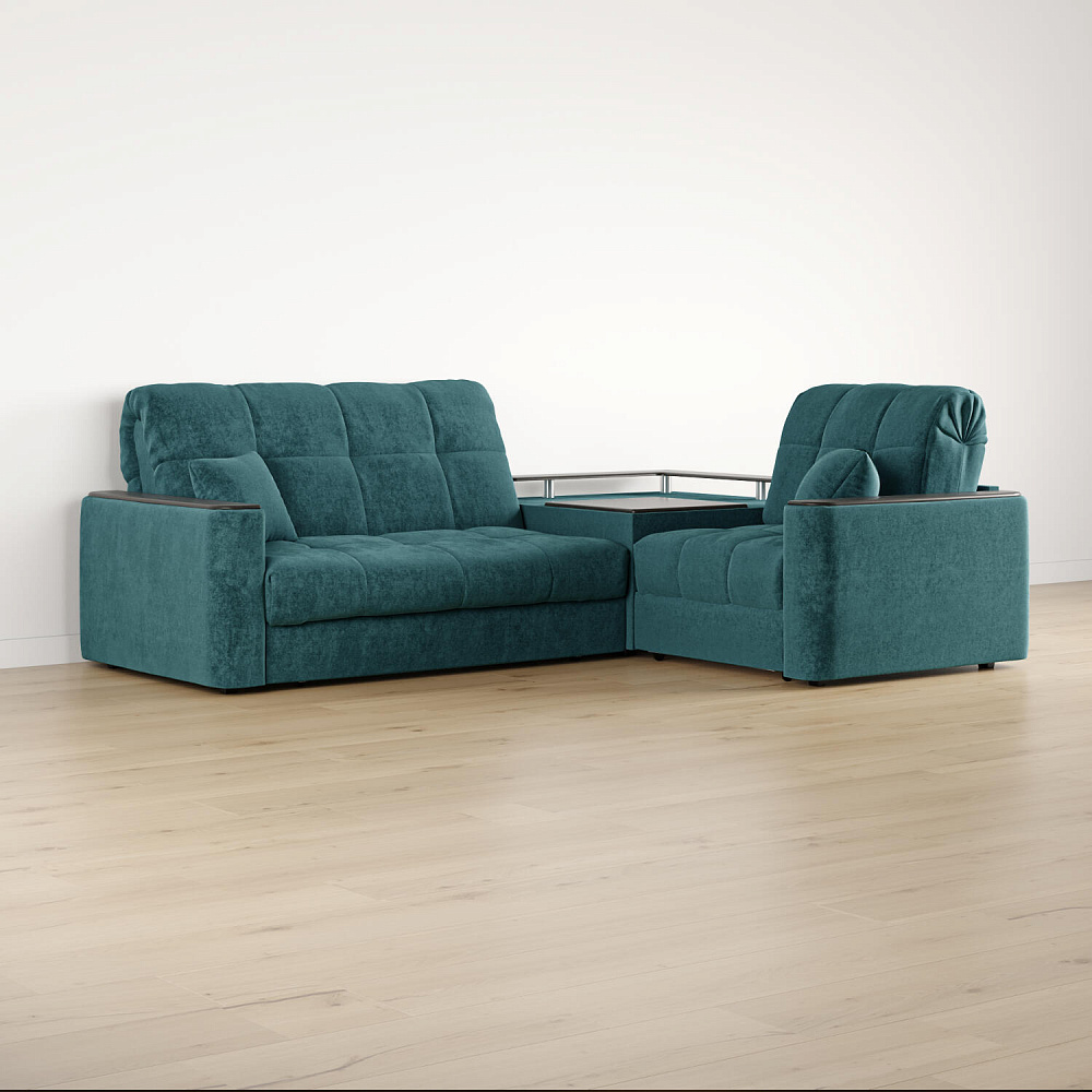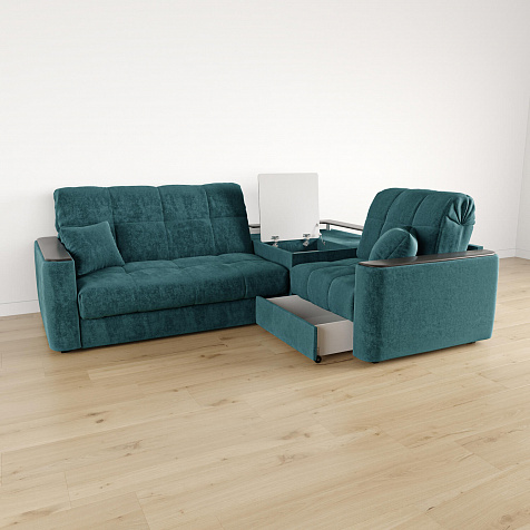 Диван угловой «Камелот» с баром станет главным местом для отдыха и приема гостей. Модель оснащена баром, на котором можно расположить еду и напитки во время просмотра фильмов и сериалов. Пропорциональные формы, плавные линии на сиденье и спинке подчеркивают лаконичный дизайн, поэтому диван подойдёт для любого современного интерьера. Диван создаст в комнате комфортную обстановку и придаст ей неповторимый вид.