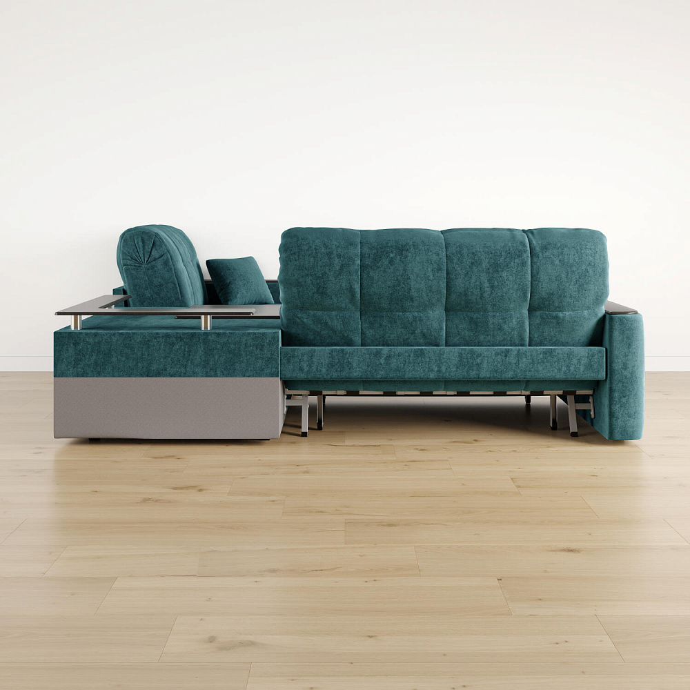- Универсальный угол. Диван подстроится под условия помещения — бар устанавливается как слева, так и справа.