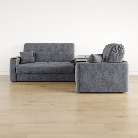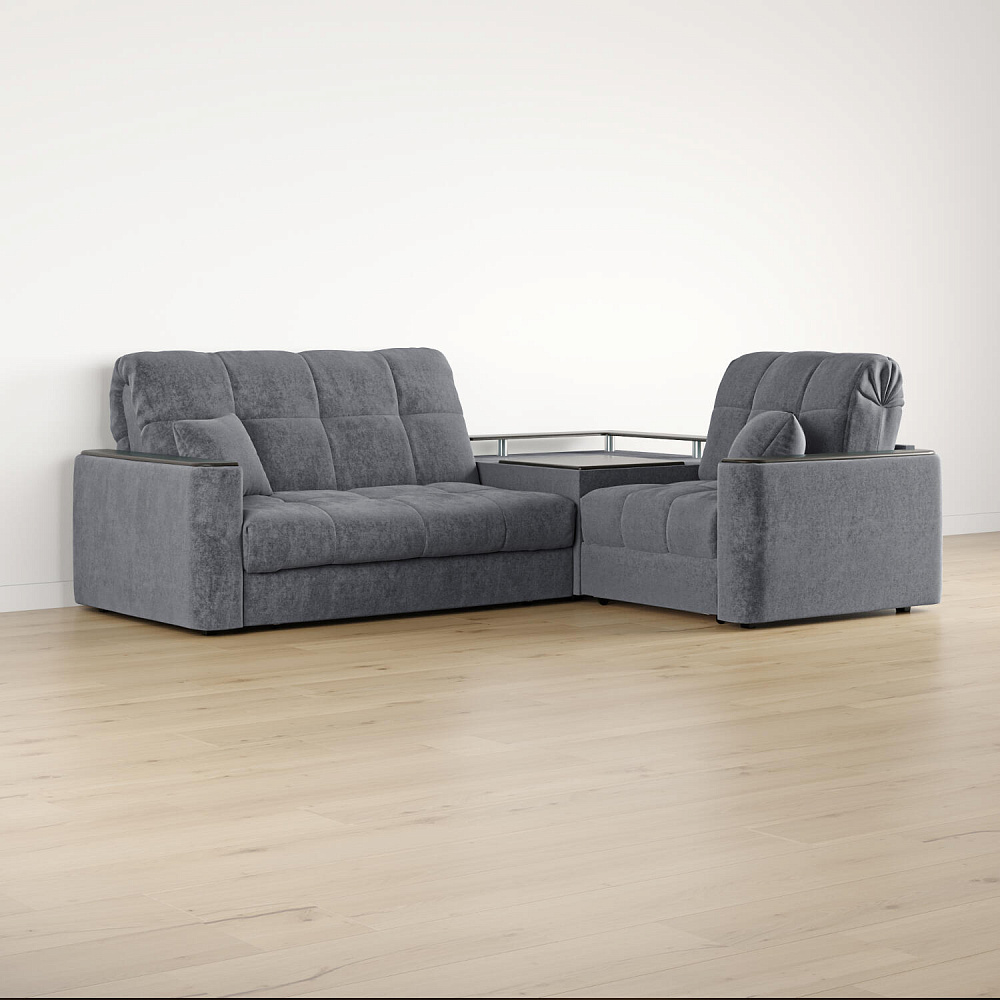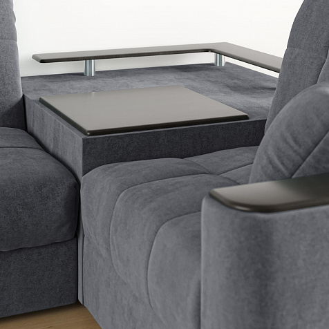 Диван угловой «Камелот» с баром станет главным местом для отдыха и приема гостей. Модель оснащена баром, на котором можно расположить еду и напитки во время просмотра фильмов и сериалов. Пропорциональные формы, плавные линии на сиденье и спинке подчеркивают лаконичный дизайн, поэтому диван подойдёт для любого современного интерьера. Диван создаст в комнате комфортную обстановку и придаст ей неповторимый вид.
