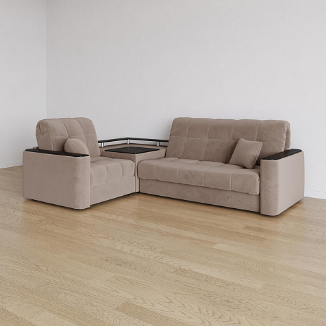 - Универсальный угол. Диван подстроится под условия помещения — бар устанавливается как слева, так и справа.