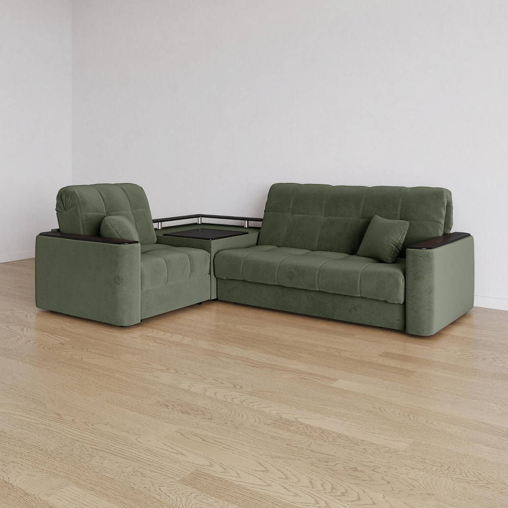 - Универсальный угол. Диван подстроится под условия помещения — бар устанавливается как слева, так и справа.