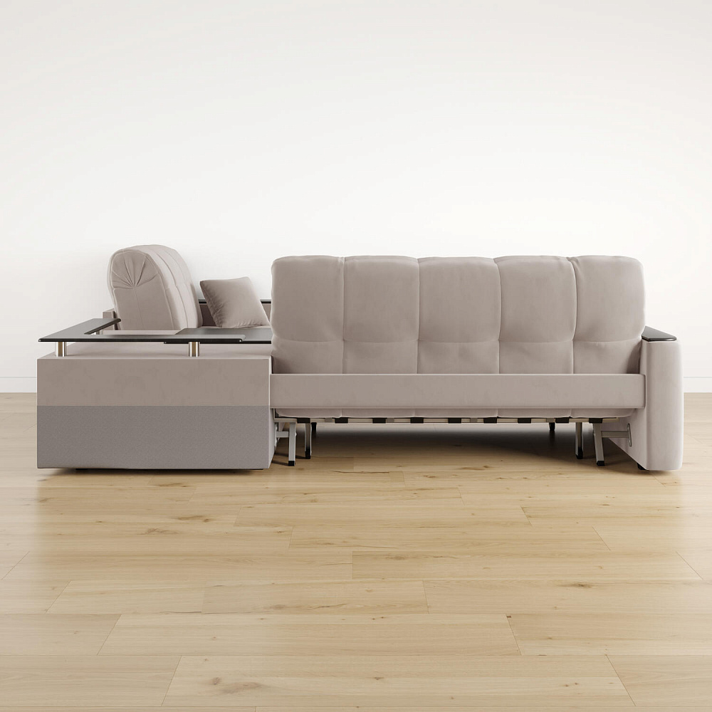 - Универсальный угол. Диван подстроится под условия помещения — бар устанавливается как слева, так и справа.