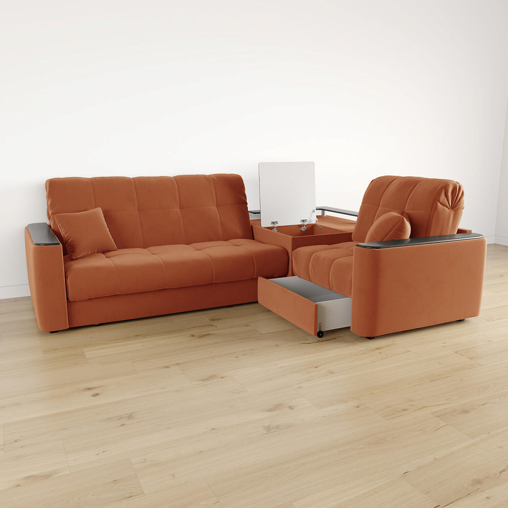 - Универсальный угол. Диван подстроится под условия помещения — бар устанавливается как слева, так и справа.