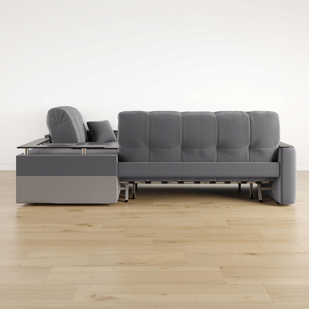 - Универсальный угол. Диван подстроится под условия помещения — бар устанавливается как слева, так и справа.