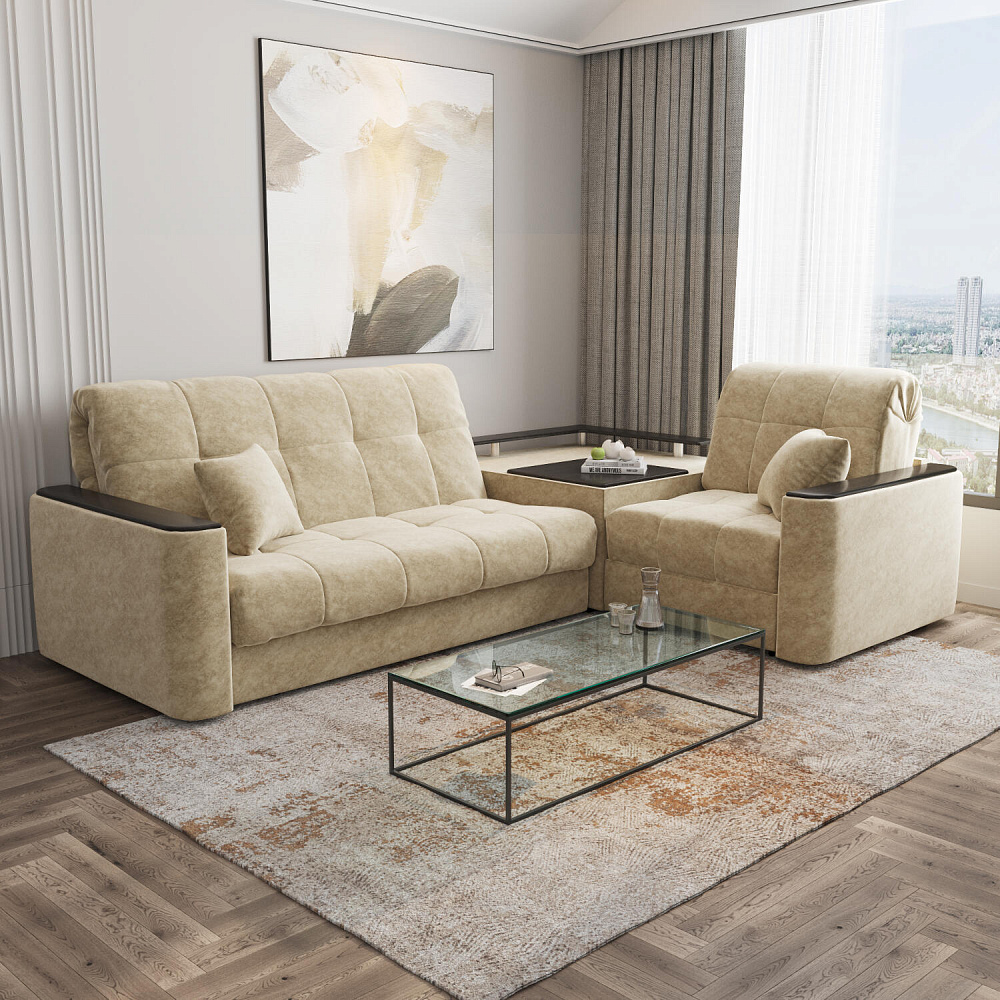 - Обивка из велюра с покрытием Easy Clean. Мягкая ткань природных оттенков легко чистится благодаря грязеотталкивающей пропитке.
