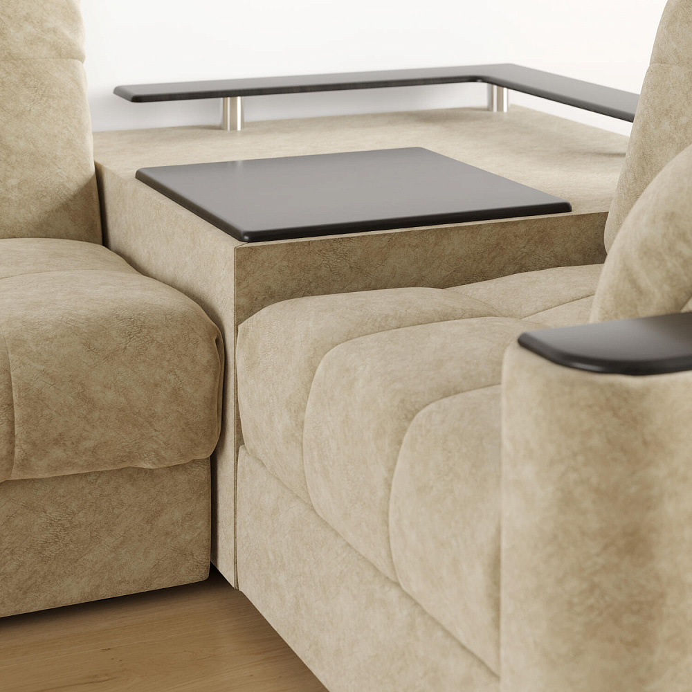- Подлокотники-подставки. Благодаря накладкам подлокотники превращаются в мини-столики под смартфон, книгу или пульт.
