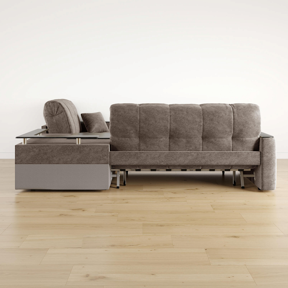 - Универсальный угол. Диван подстроится под условия помещения — бар устанавливается как слева, так и справа.