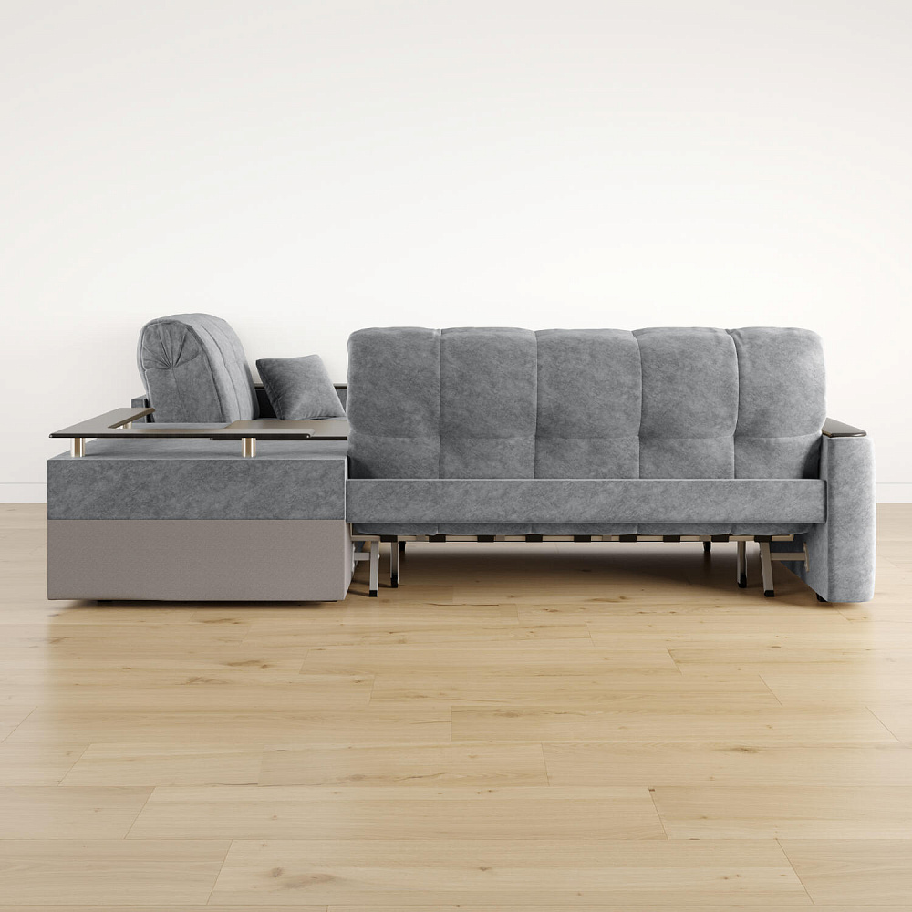 - Универсальный угол. Диван подстроится под условия помещения — бар устанавливается как слева, так и справа.