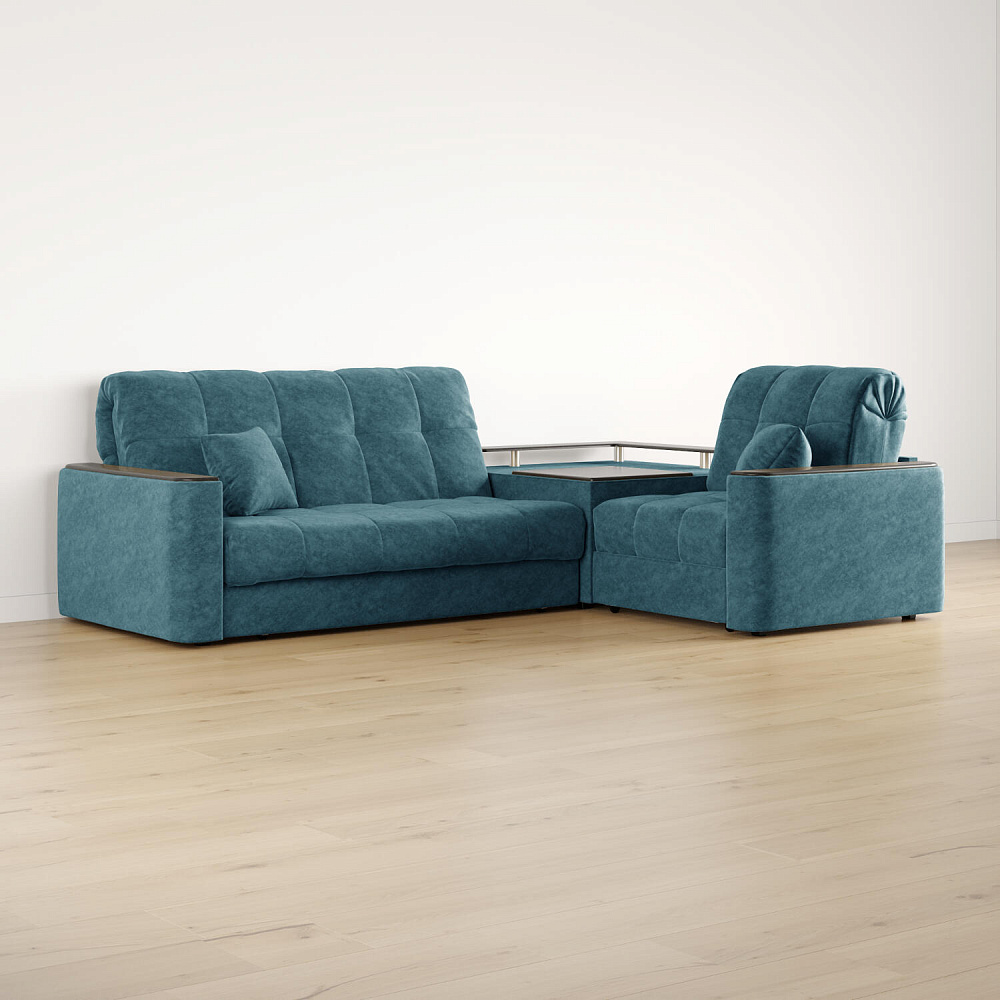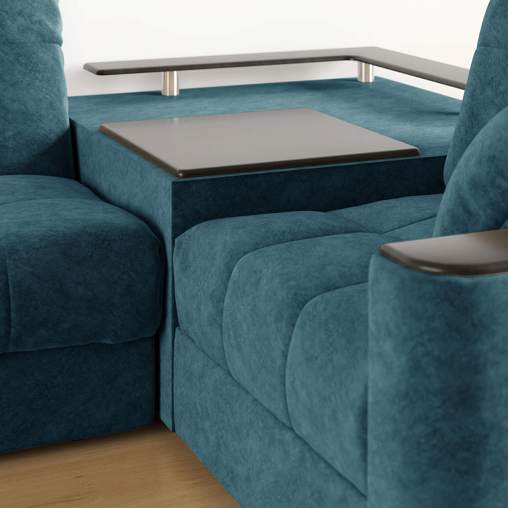 Диван угловой «Камелот» с баром станет главным местом для отдыха и приема гостей. Модель оснащена баром, на котором можно расположить еду и напитки во время просмотра фильмов и сериалов. Пропорциональные формы, плавные линии на сиденье и спинке подчеркивают лаконичный дизайн, поэтому диван подойдёт для любого современного интерьера. Диван создаст в комнате комфортную обстановку и придаст ей неповторимый вид.